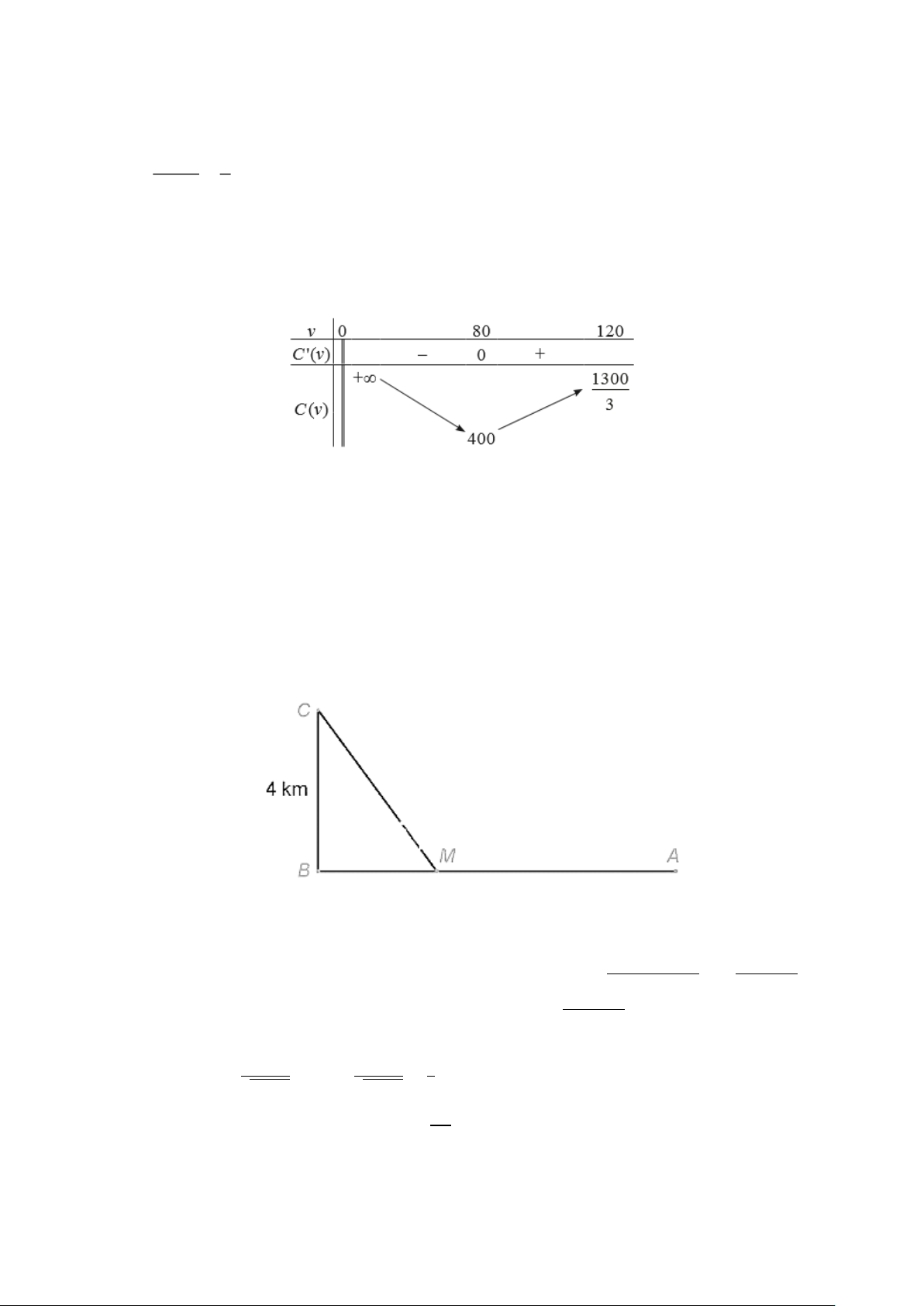 Giả sử chi phí tiền xăng C (đồng) phụ thuộc tốc độ trung bình v (km/h) theo công thức: 16000 5 C(v) = + v