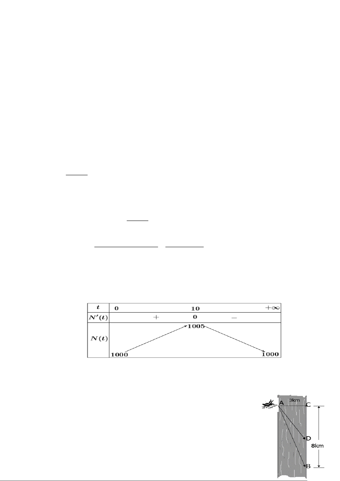 Xét hàm số N (t) = 1000 + t 0 . 2 ( ) 100 + t 100.( 2