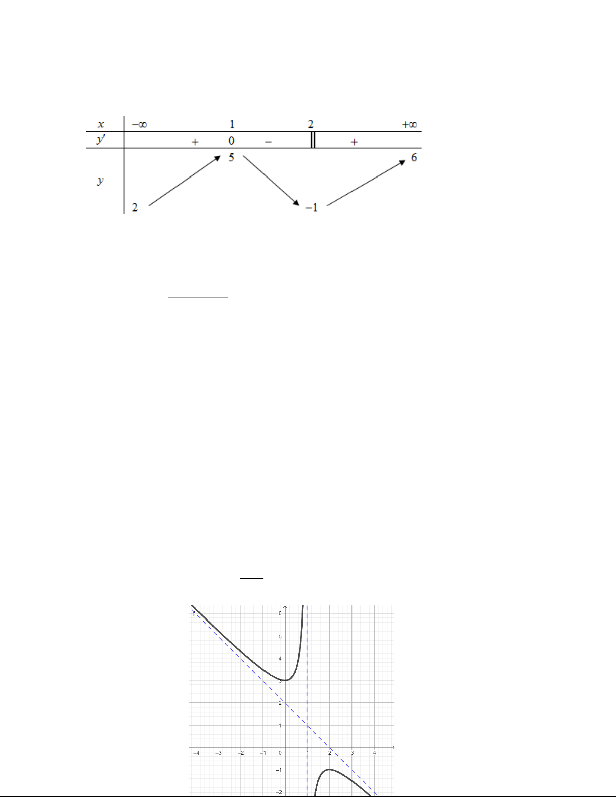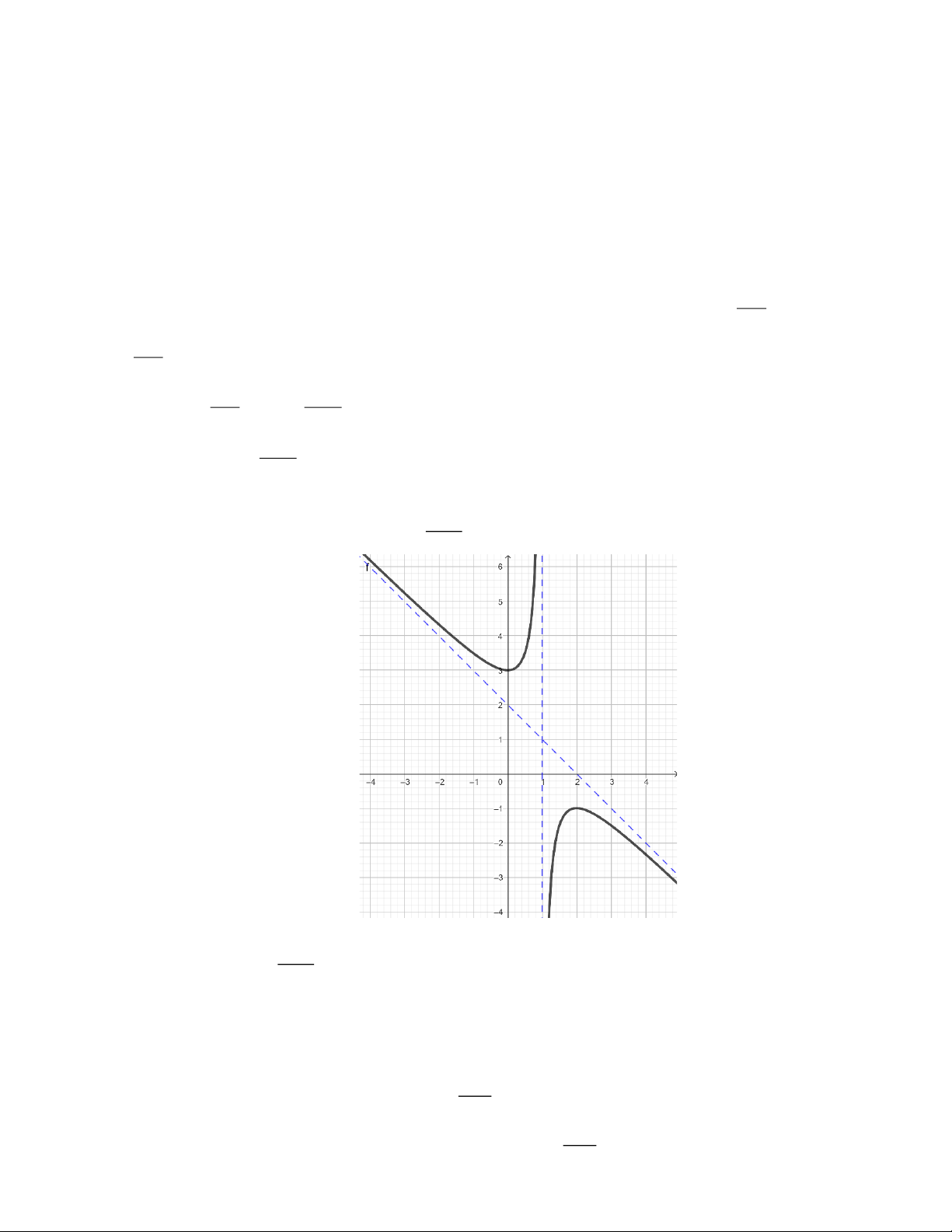 - Nên đồ thị của hàm số có đường tiệm cận xiên là y = ax + 2 , mà như hình vẽ đường tiệm cận xiên đi qua điểm (1; ) 1 suy ra 1= . a 1+ 2 a = 1 − .