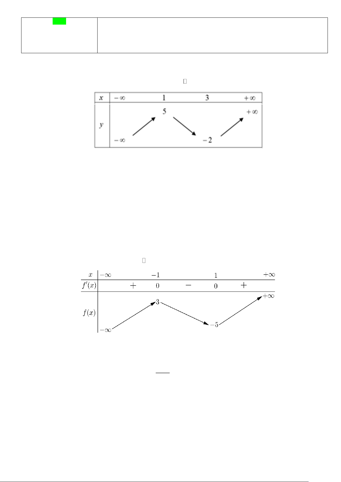 Câu 5. Cho hàm số y = f (x) liên tục trên và có bảng biến thiên sau: