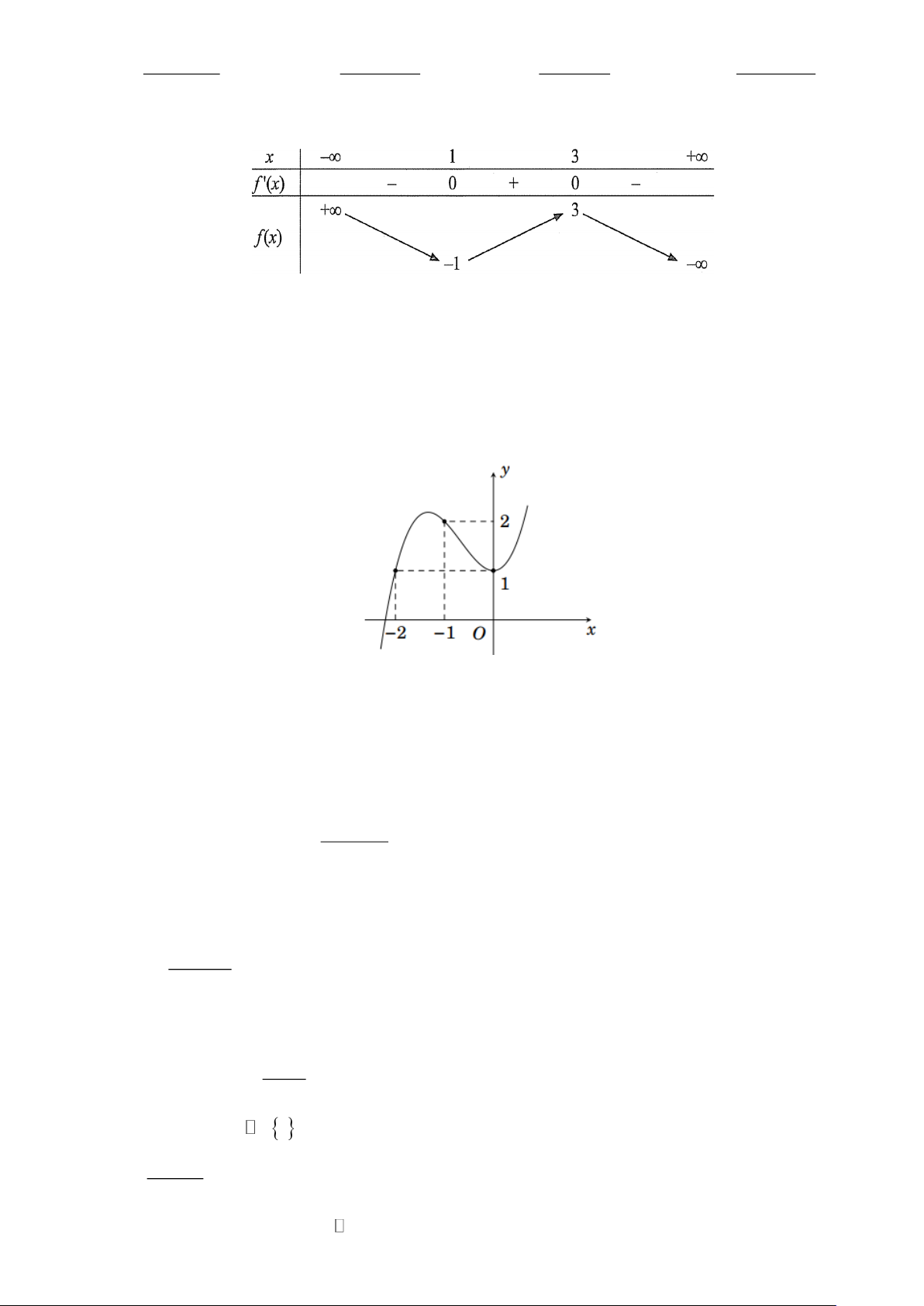 Câu 1. Giá trị cực tiểu của hàm số y = f (x) liên tục trên và có bảng biến thiên như dưới đây là A. 1. B. 5. C. 2 − . D. 3.
