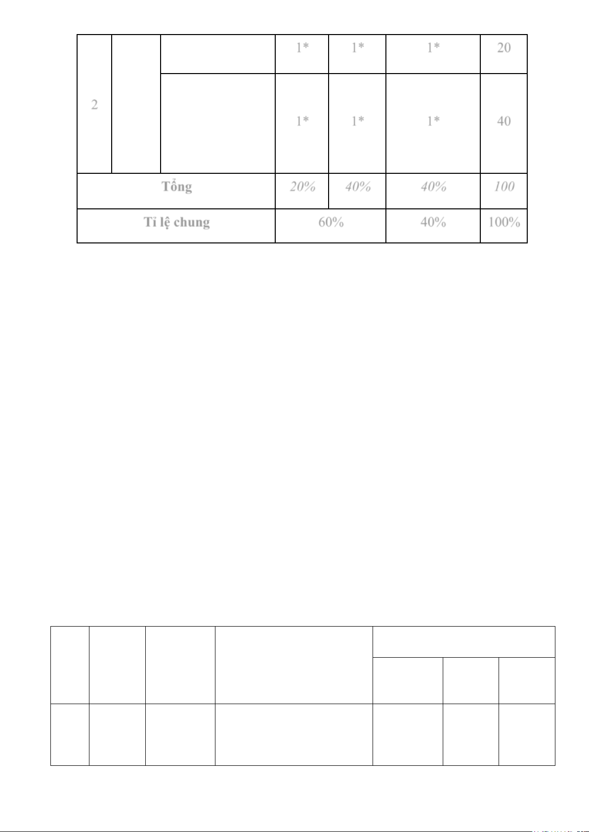 đáo, sáng tạo, hợp logic. Tổng điểm 2 4 4 Tỉ lệ % 20% 40% 40% Tỉ lệ chung 60% 40% Trang 10
