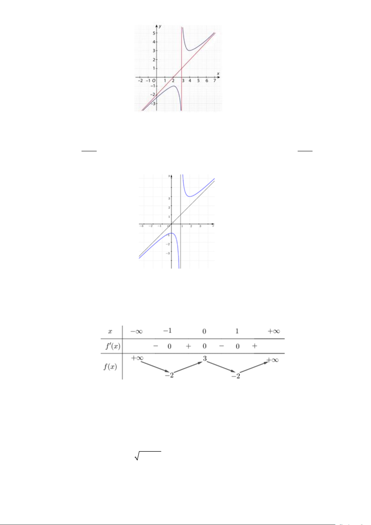 Câu 10. Cho hàm số y = f (x) có đồ thị như hình vẽ bên. Tìm tiệm cận xiên của đồ thị hàm số. Trang 2