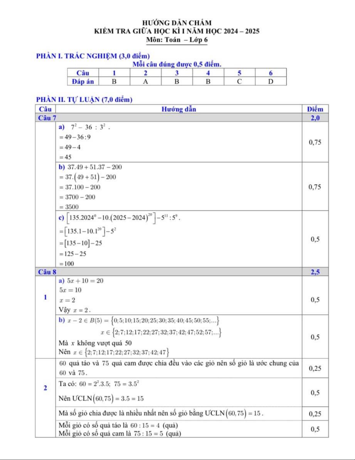 7 – 36 : 3 . b) 37.49 51.37 200 . c) 20 0 11 9 135.2024 10. 2025 2024 5 : 5 . Câu 8. (2,5 điểm)