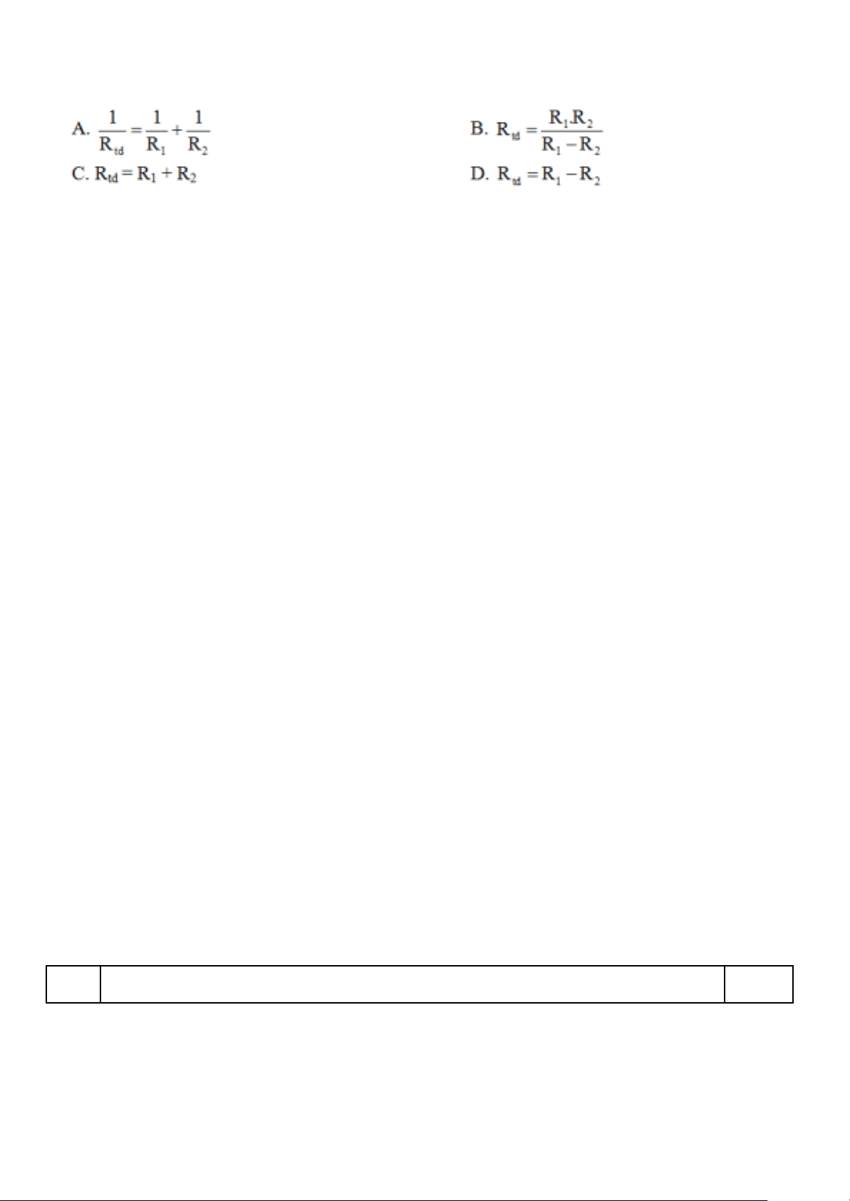 Biểu thức nào sau đây xác định điện trở tương đương của đoạn mạch có hai điện trở R1, R2 mắc song song?