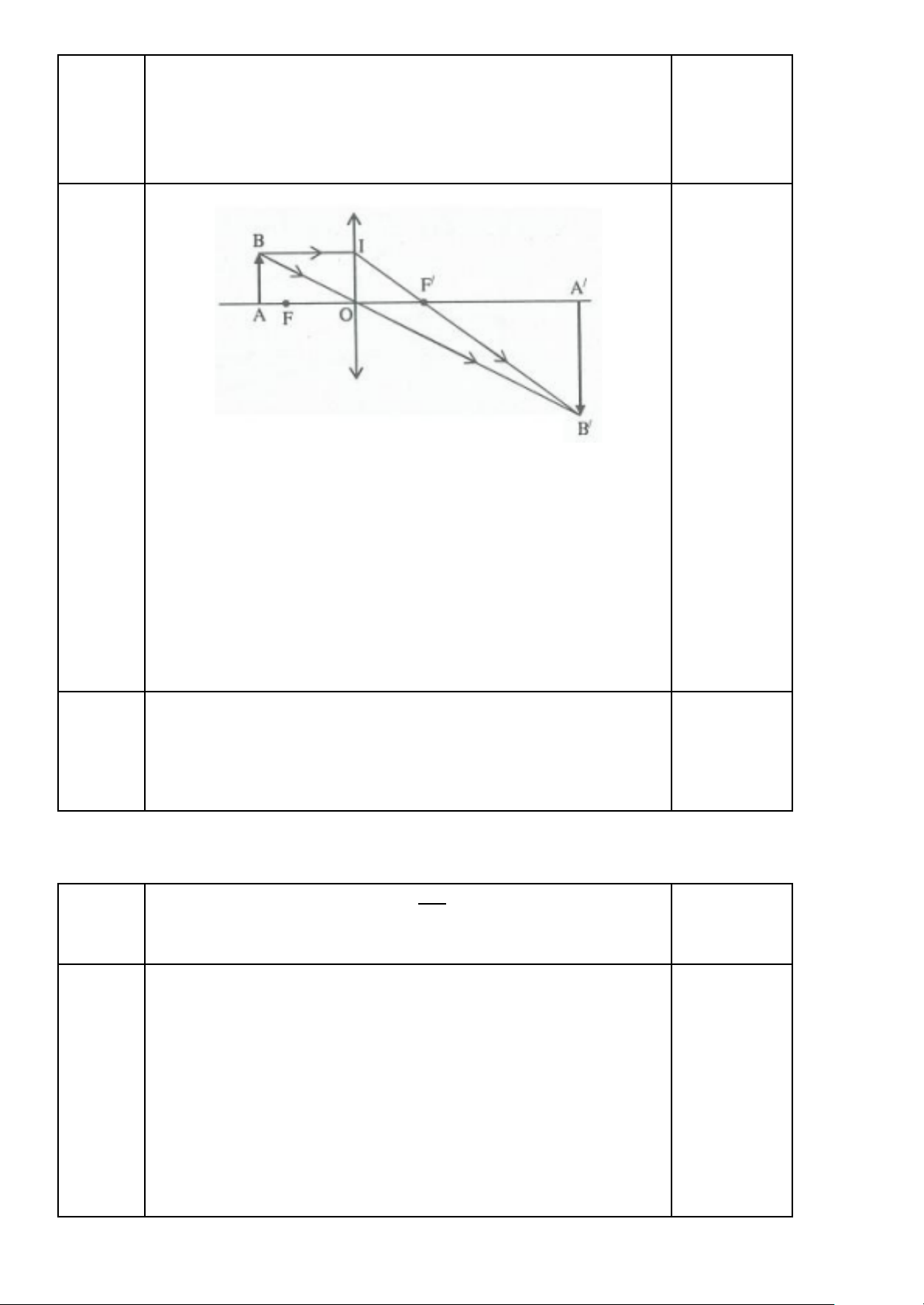 Câu 1 2 3 4 5 6 7 8 Đáp án C A A A B A B C Câu 9 10 11 12 13 14 15 16 Đáp 0.25 nghi đ/ý = án B B B A C B A C ệm 4,0đ Tự luận 1 - Vẽ hình đúng. 1đ I B F’ O A’ A FΔ B 0,5đ ’