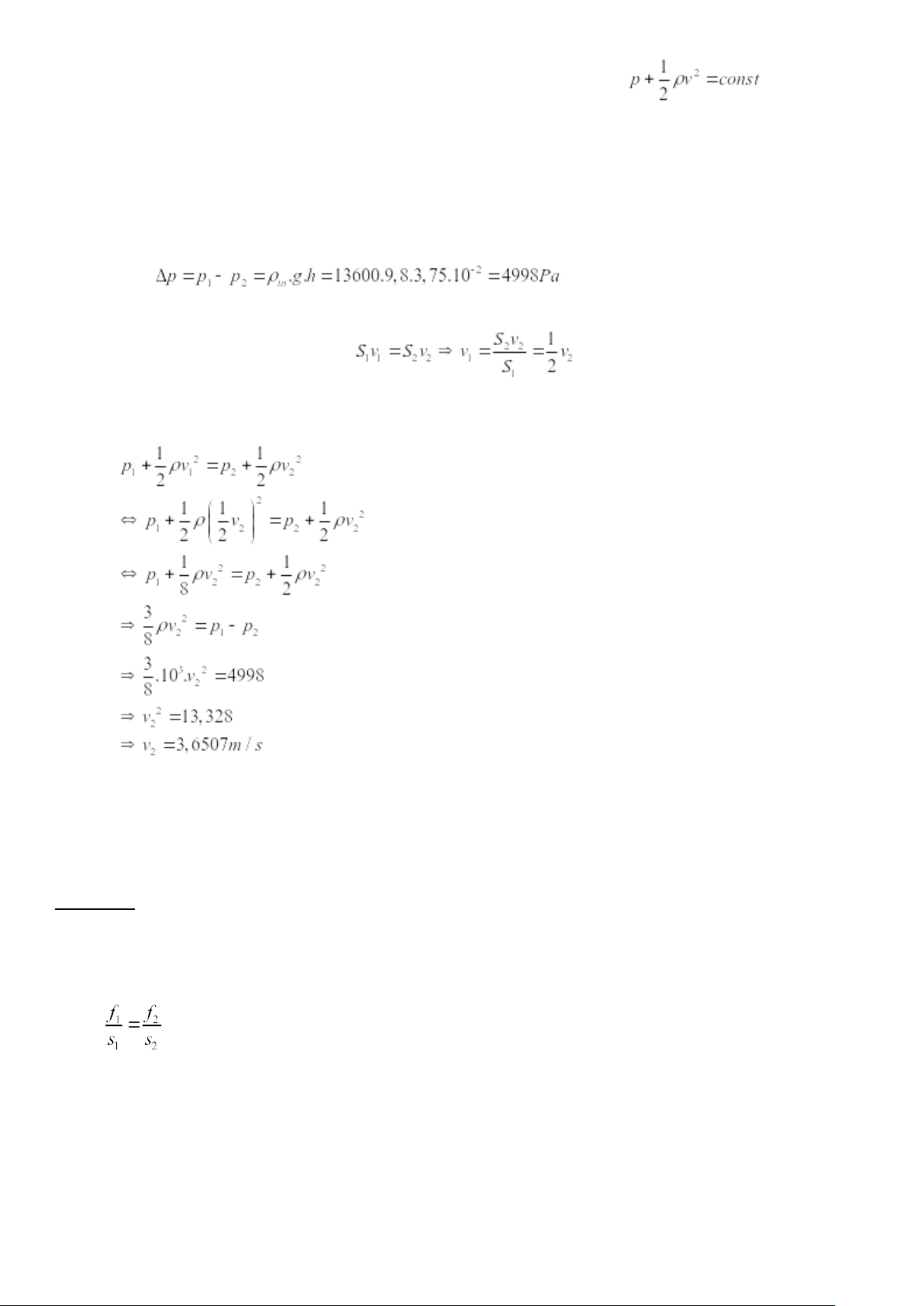 • Ta có: mà p1 > p2 và v1 < v2 ⇒