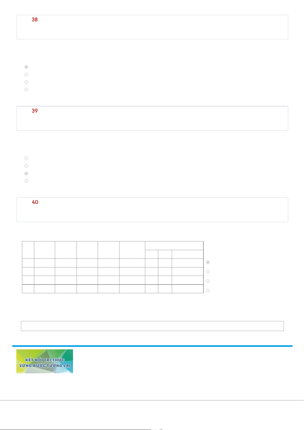Kết thúc lúc Sunday, 18 June 2023, 9:02 PM 1 giờ Thời gian thực hiện Điểm 33,50/40,00 Điểm 8,38 trên 10,00 (84%) Câu hỏi Hoàn thành Đạt điểm 1,00 trên 1,00