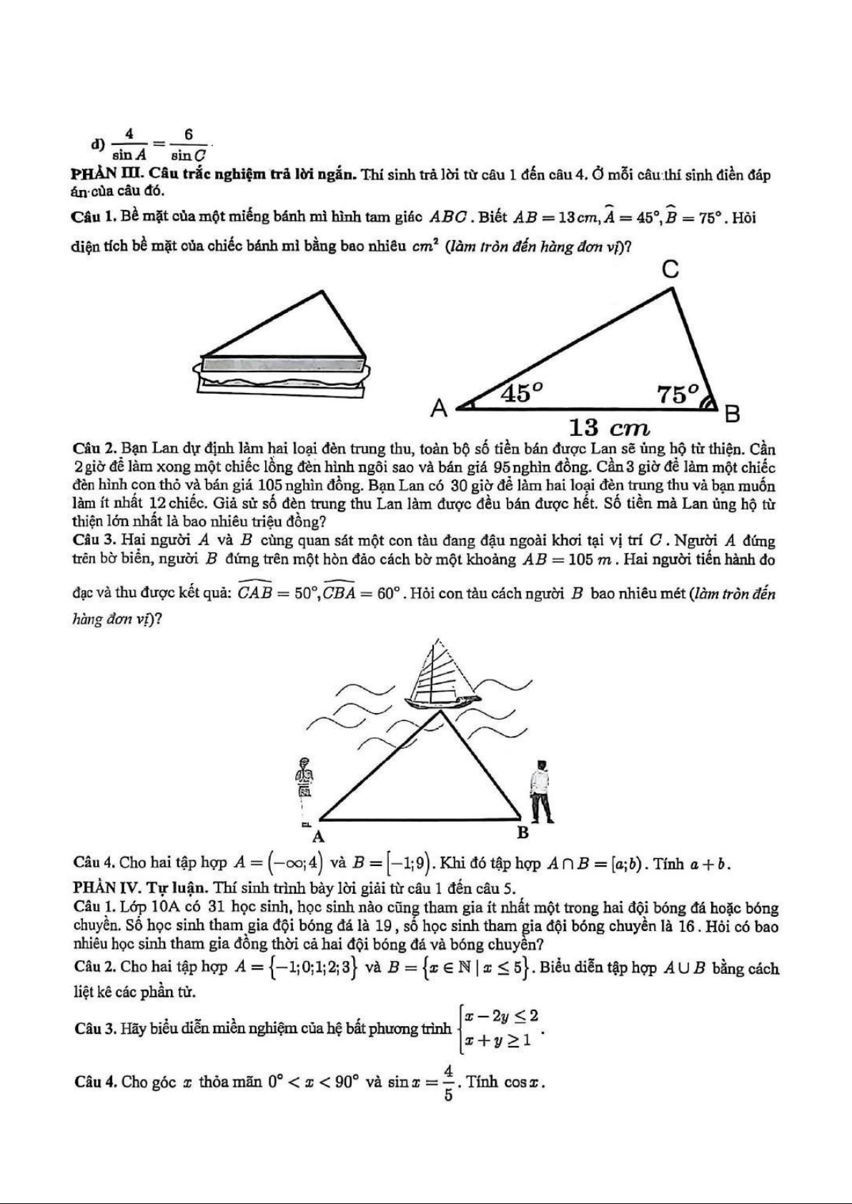 Đề thi giữa kì 1 Toán 10 năm 2025 – 2026 trường THPT Chu Văn An – Thái Nguyên