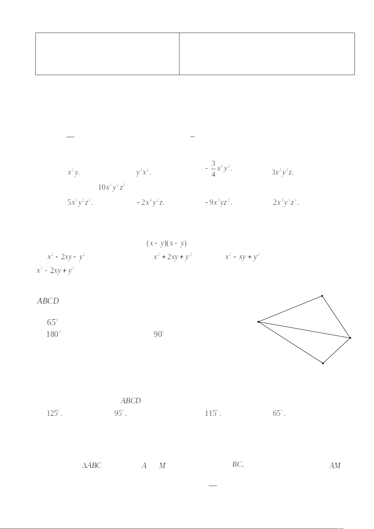 Câu 5: Đơn thức 8x3y2z2 chia hết cho đơn thức nào sau đây?