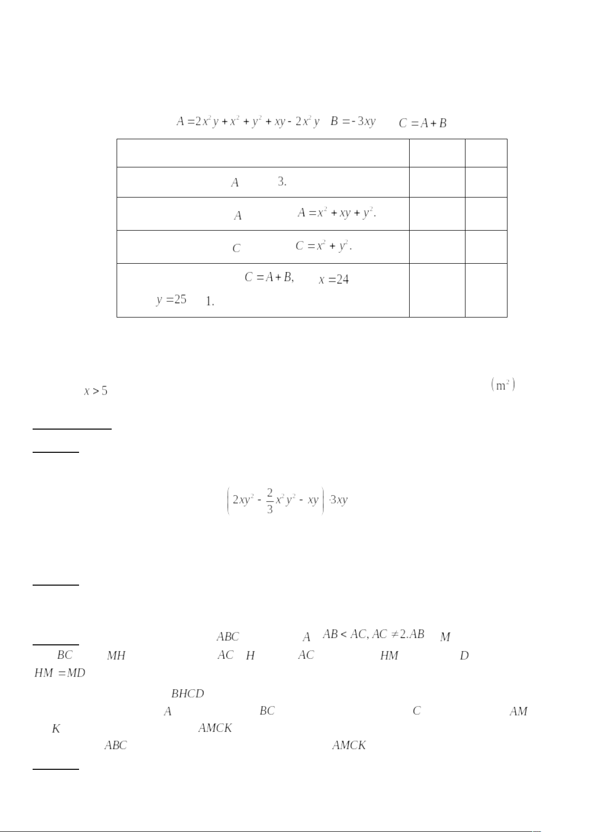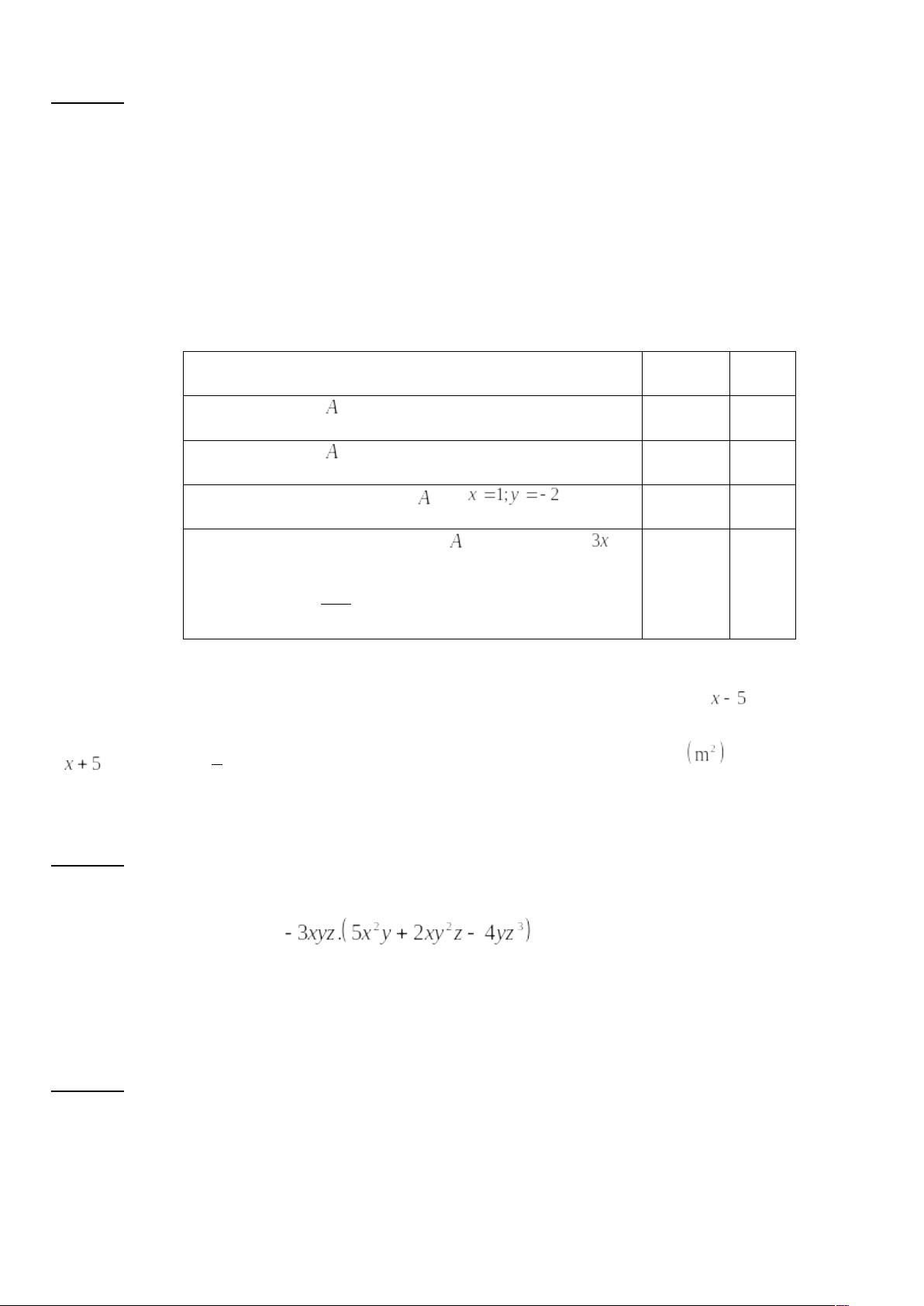 Câu 12. Nhà bác Hoa có mảnh ruộng hình chữ nhật có các kích thước là 2x (m) và 2 (m) (với /2). Biểu thức biểu thị diện tích mảnh ruộng là: .................................