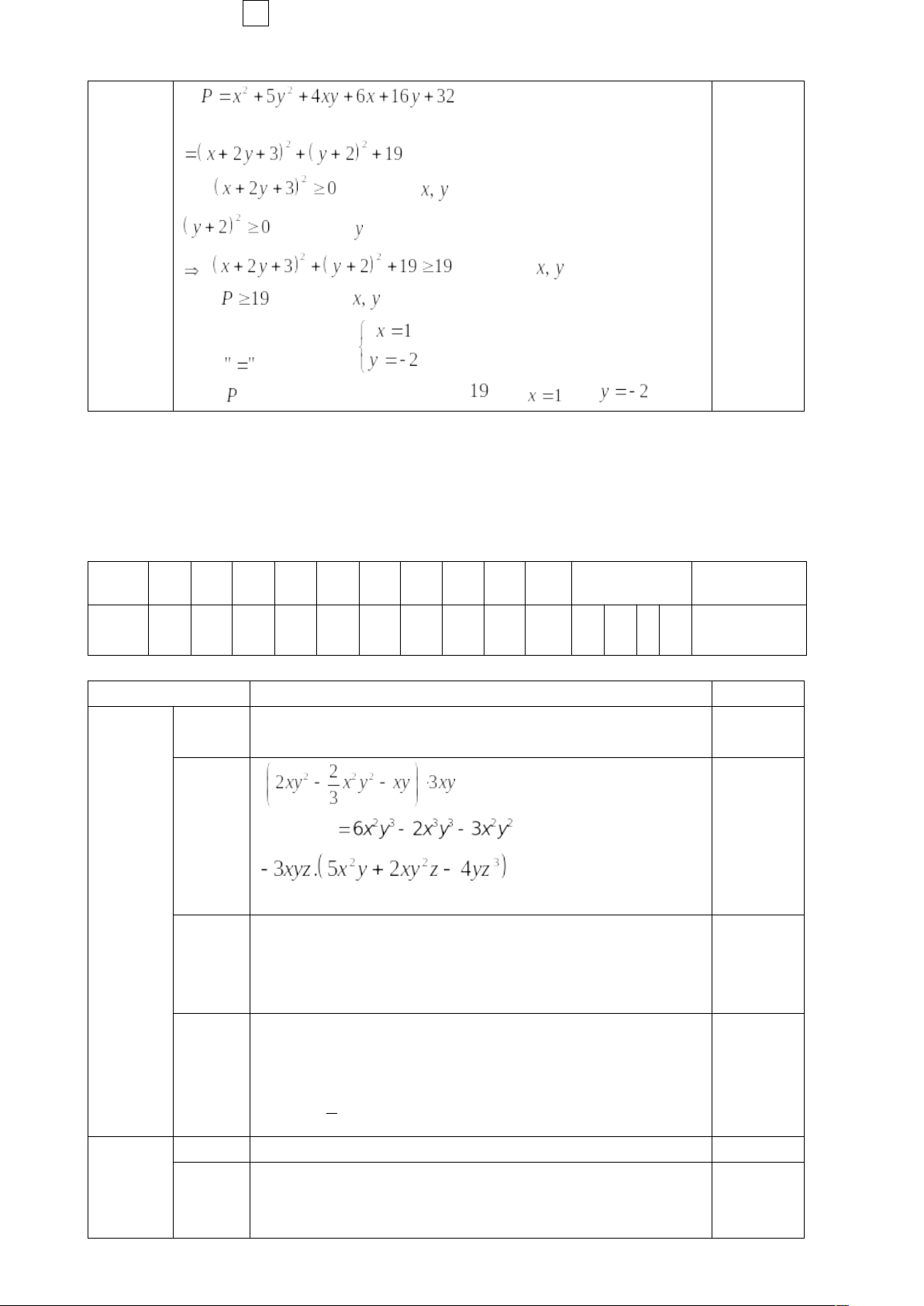 13 | 1a) | -5x2y.(-2xyz2) = 10x3y2z2 | 0,5 |