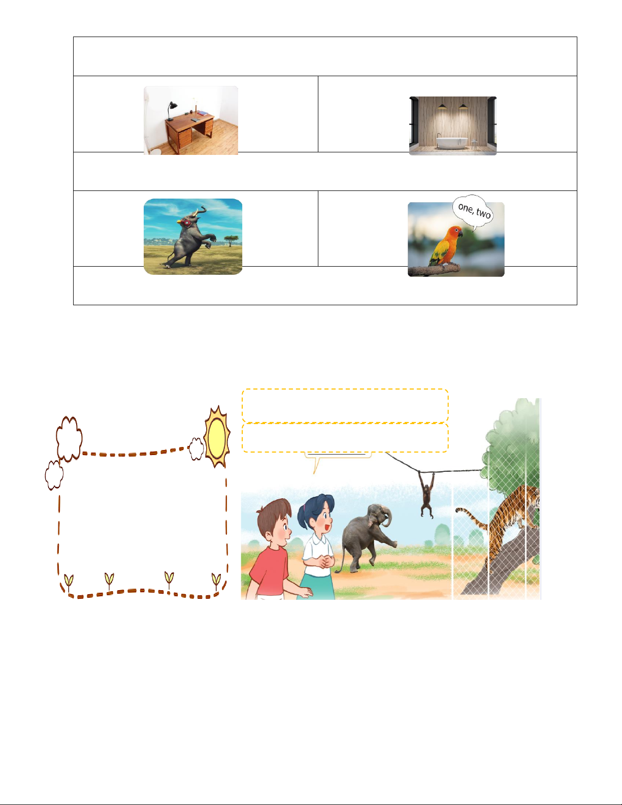 - Teacher says: Now you have 30 seconds to look at the picture and say aloud. Where’re you? I’m in the zoo. - Elephant/dancing - Monkey/swinging - Tiger/climbing ……… Trang 6