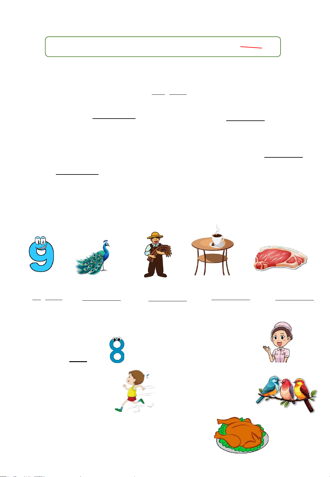 II. Look, read and complete. 1. sister 2. chair 3. cycling 4. chicken PART C: WRITING I. Reorder the letters 1. cooking 2.library 3. basketball 4. notebook II. Look and write 1. nurse 2. running 3. birds 4. chicken III. Reorder the words
