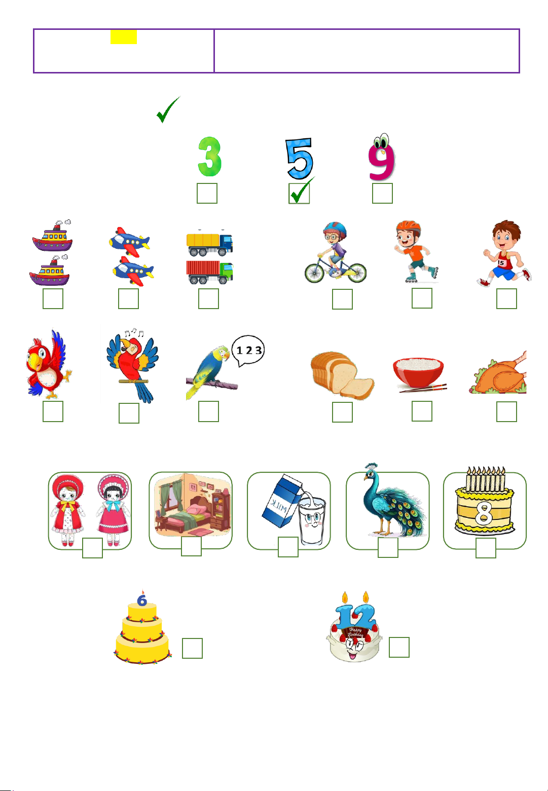 II. Read and tick ( ) or cross ( ) . There are examples. ( 1 points) 0. I’m nine years old.