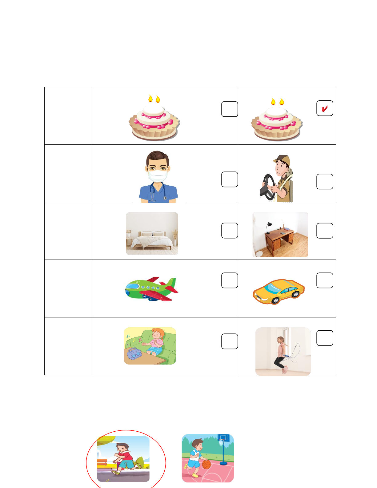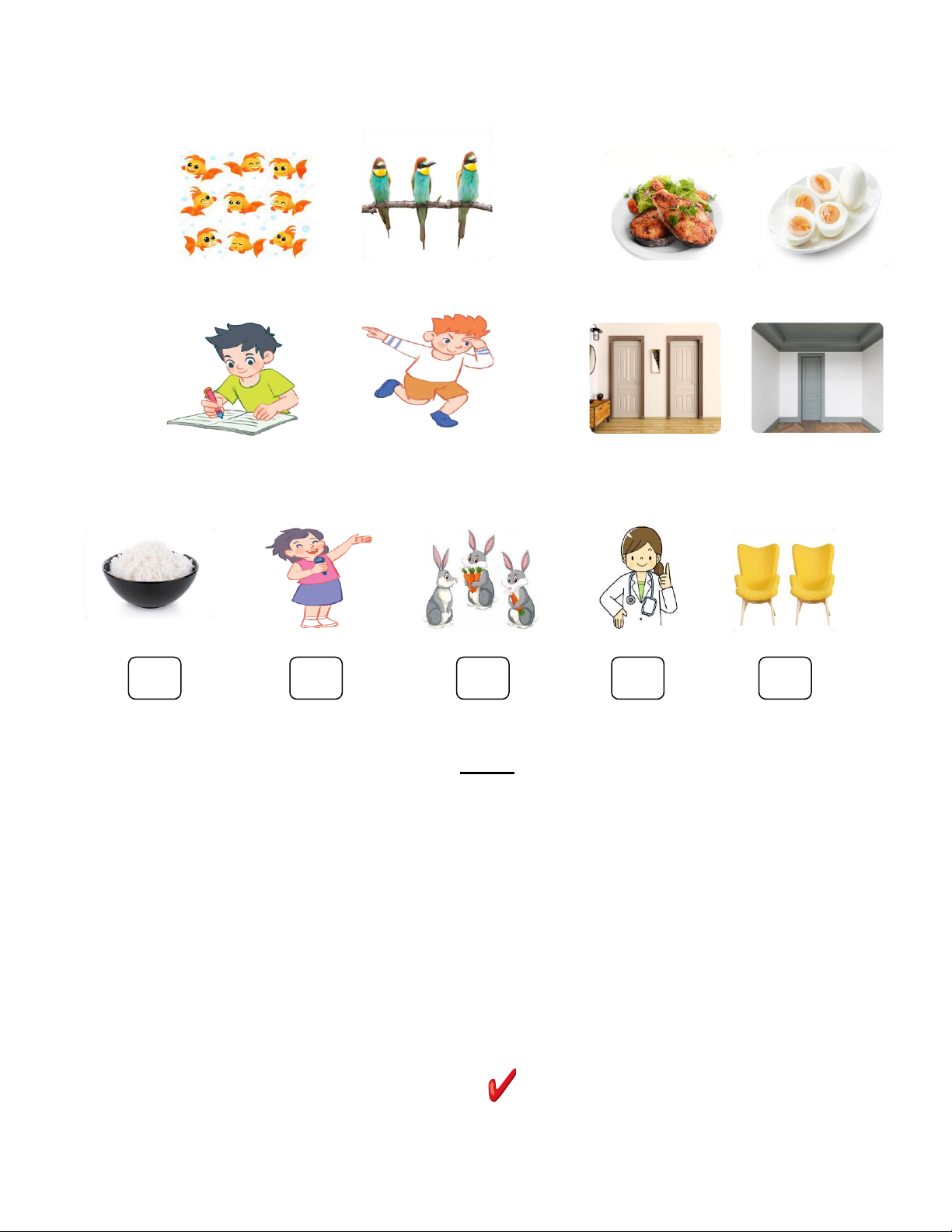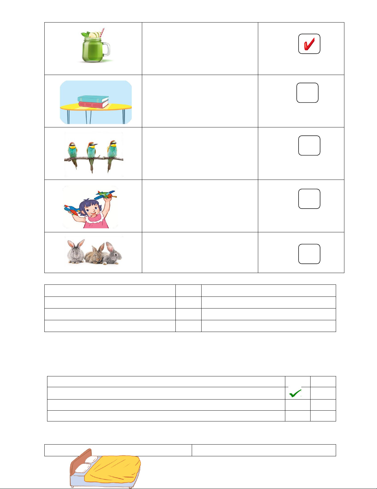 ) or cross (X) in the box. There are two examples. Trang 2 0. Would you like some juice? 0.0. The books are on the chairs. X 1. Do you have any birds? Yes, I do. 2. She has two planes. 3. I have many rabbits.