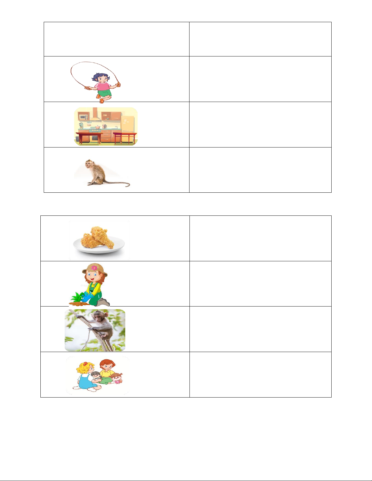 1. skipping 2. kitchen 3. monkey Question 9 1. farmer 2. Climbing 3.doll Question 10