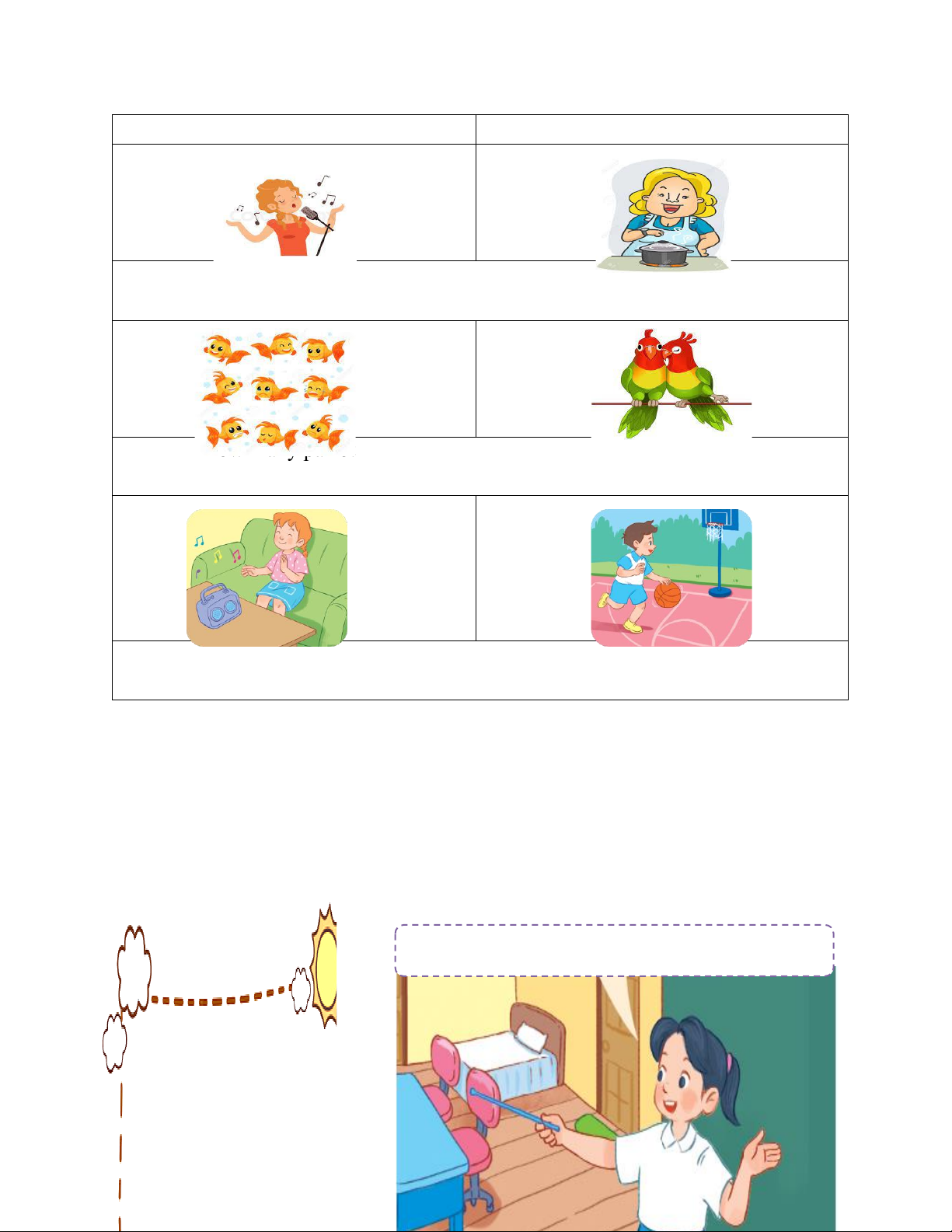Student points to flashcard : ………………………….. Teacher: What’s she doing?
