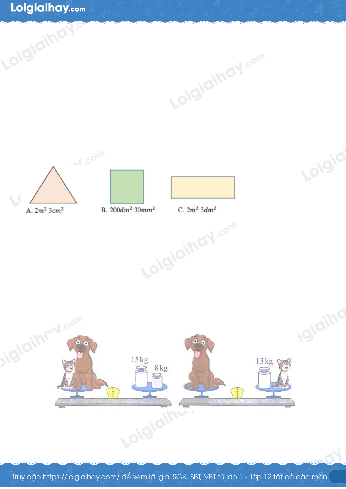 - Từ bức tranh bên trái xác định tổng cân nặng của chó và mèo 2