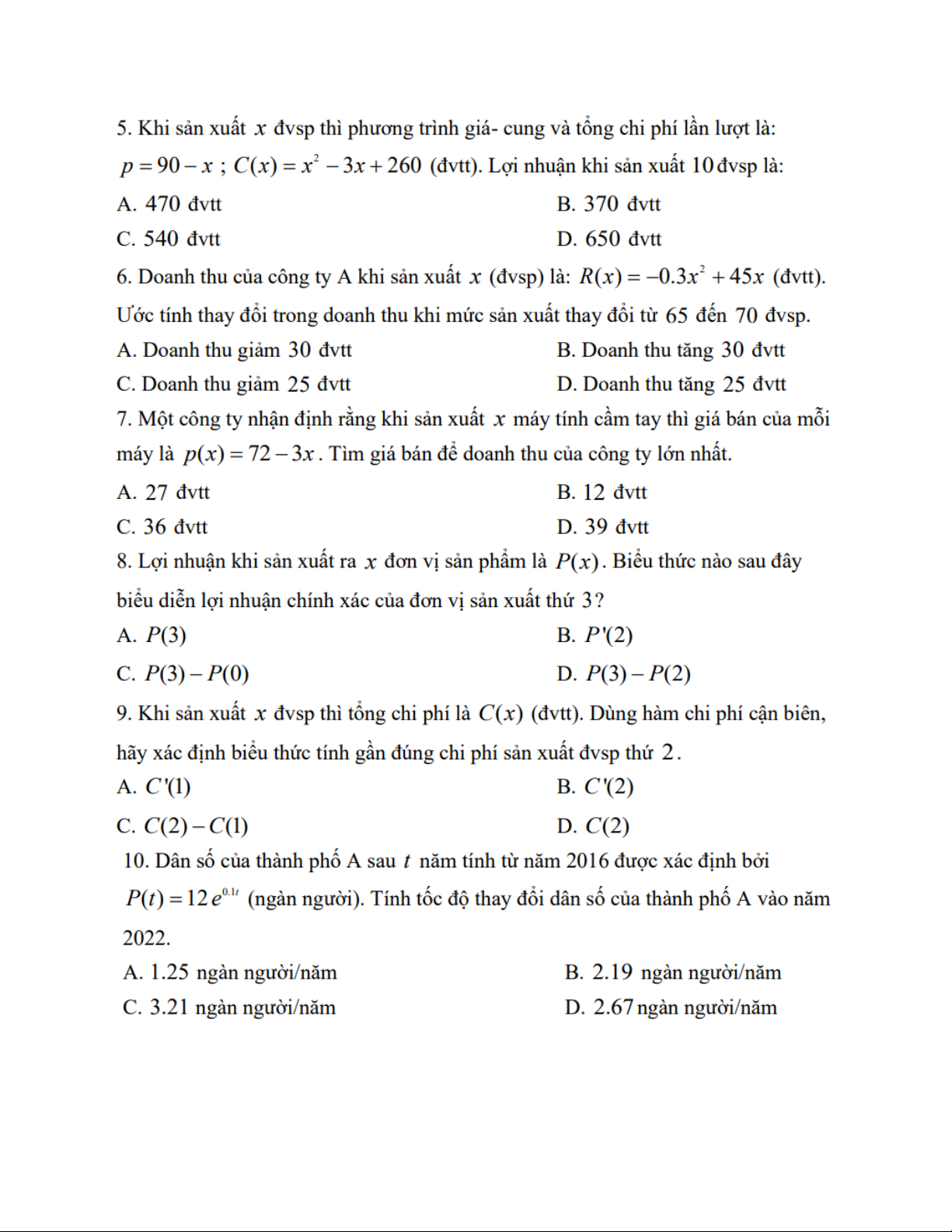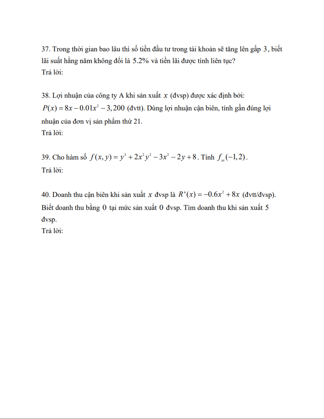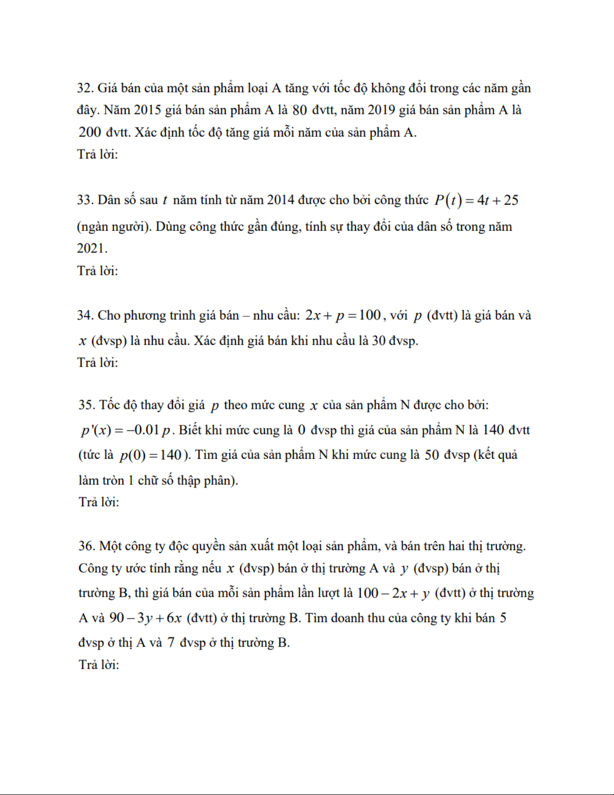 Bài tập ôn thi cuối kỳ: Câu hỏi trắc nghiệm và tự luận môn Toán cao cấp C1 | Trường Đại học Duy Tân