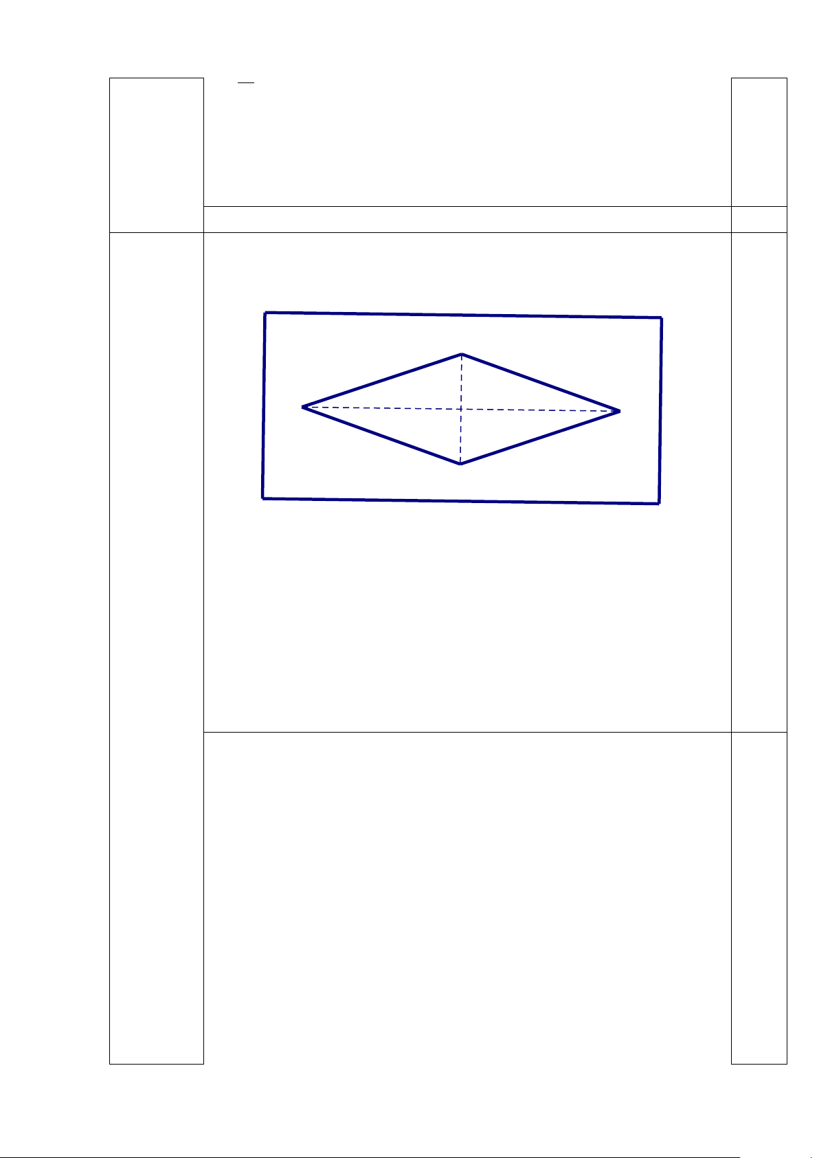Người ta trồng một vườn hoa hình thoi ở trong mảnh đất đó, biết diện tích phần còn