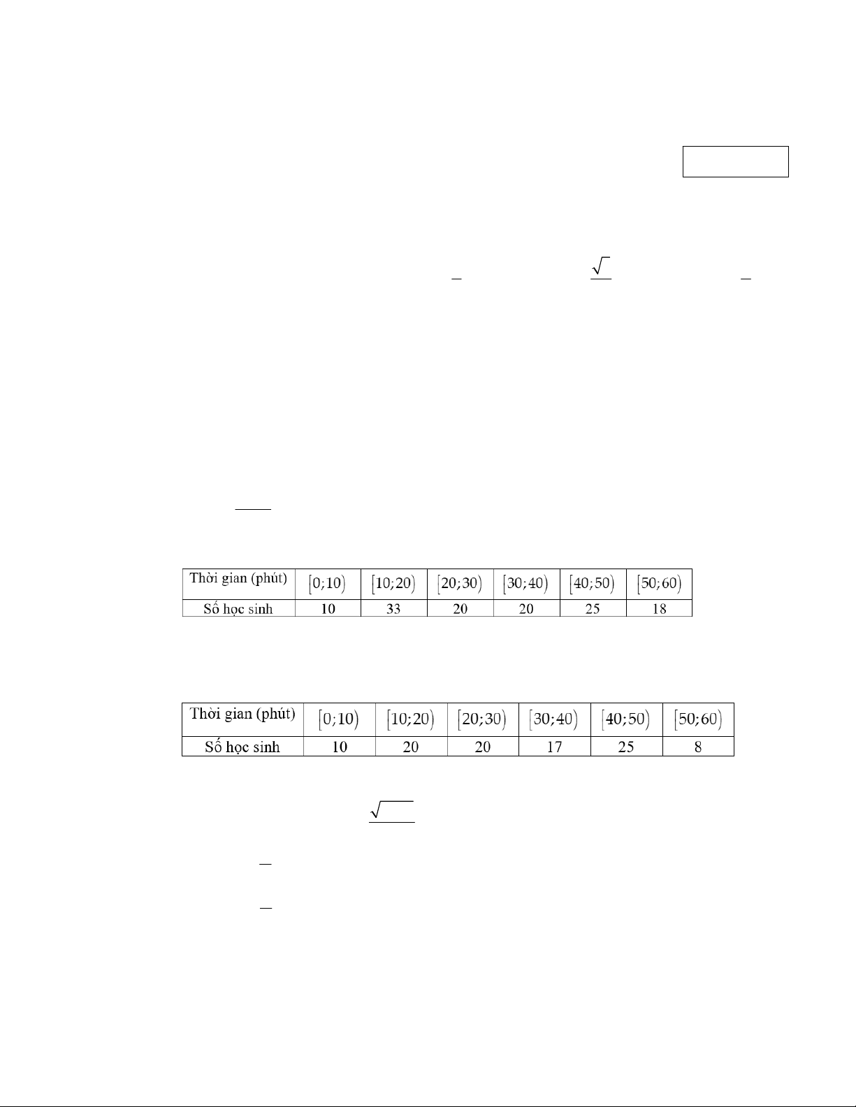 Câu 8: Khảo sát thời gian tập thể dục trong ngày của một số học sinh khối 11 thu được mẫu số liệu ghép nhóm sau: