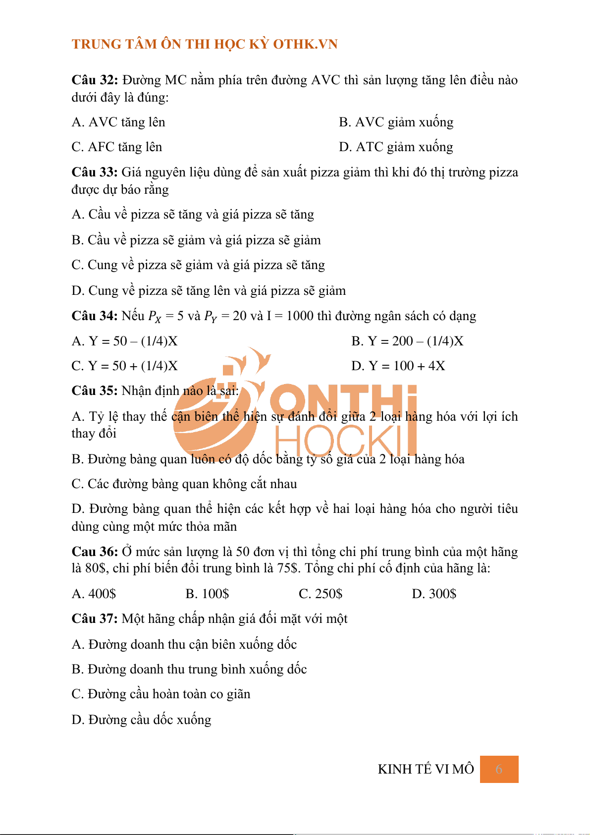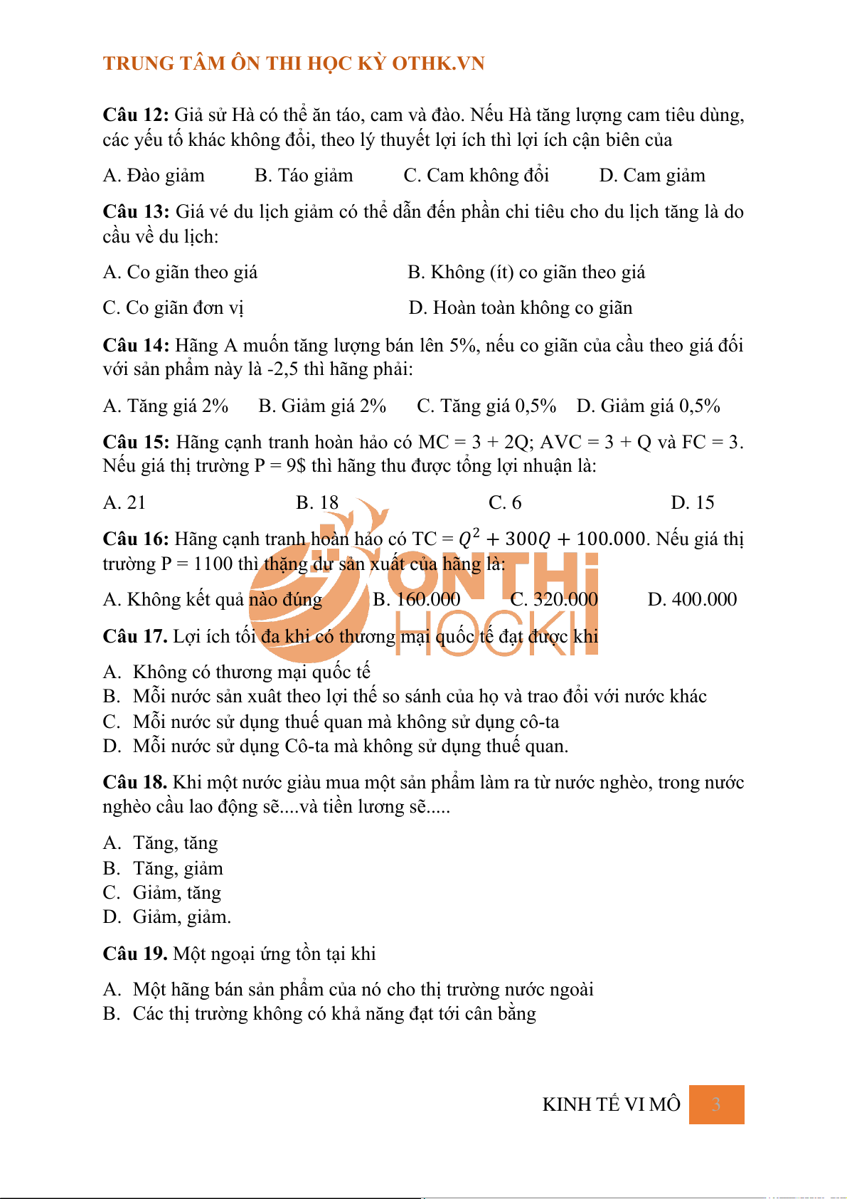 TRUNG TÂM ÔN THI HỌC KỲ OTHK.VN