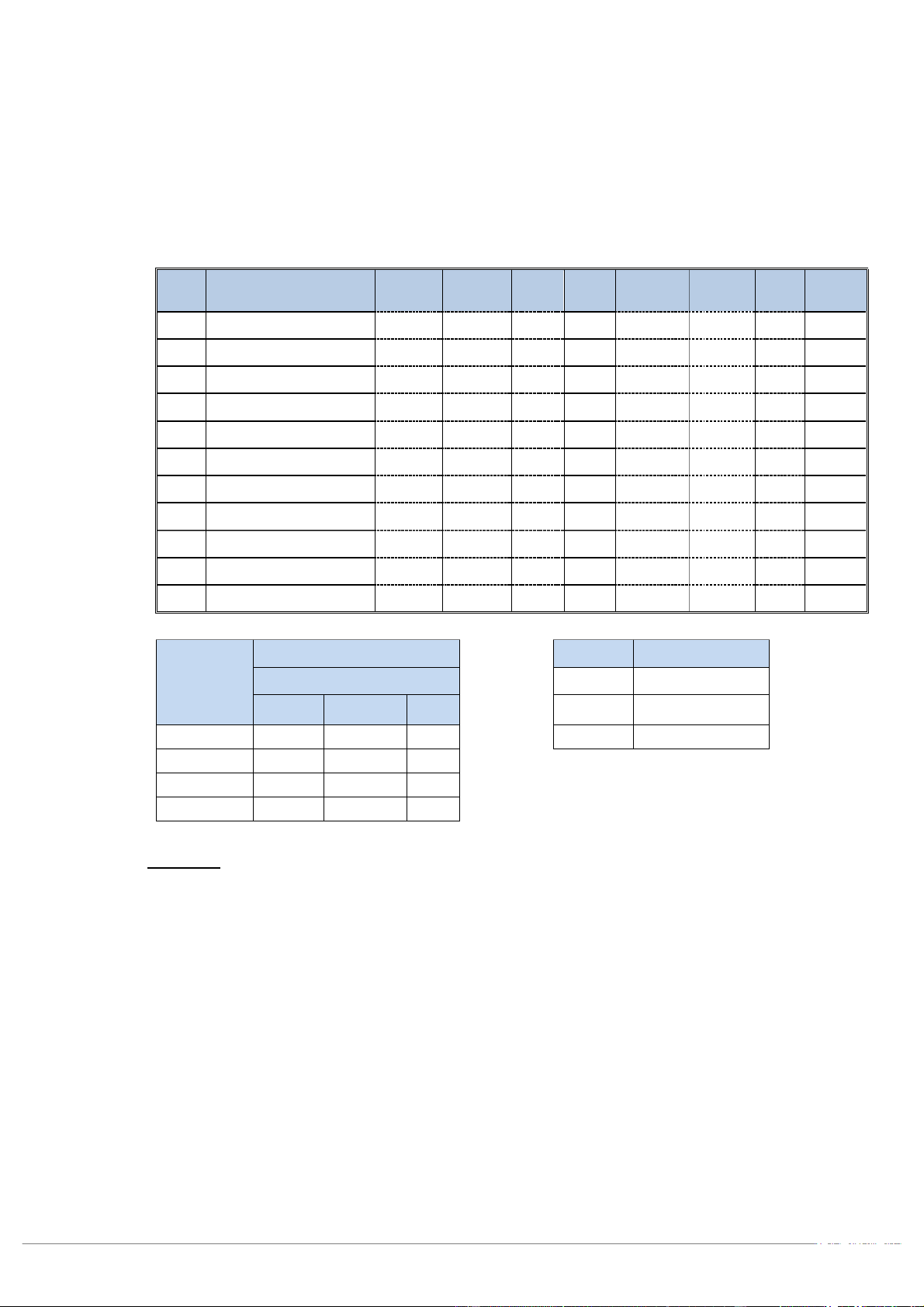 Anh/chị hãy trình bày bảng tính sau, thực hiện các công thức tính toán theo yêu cầu của đề bài: