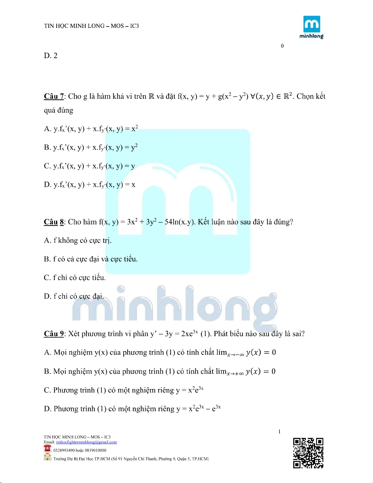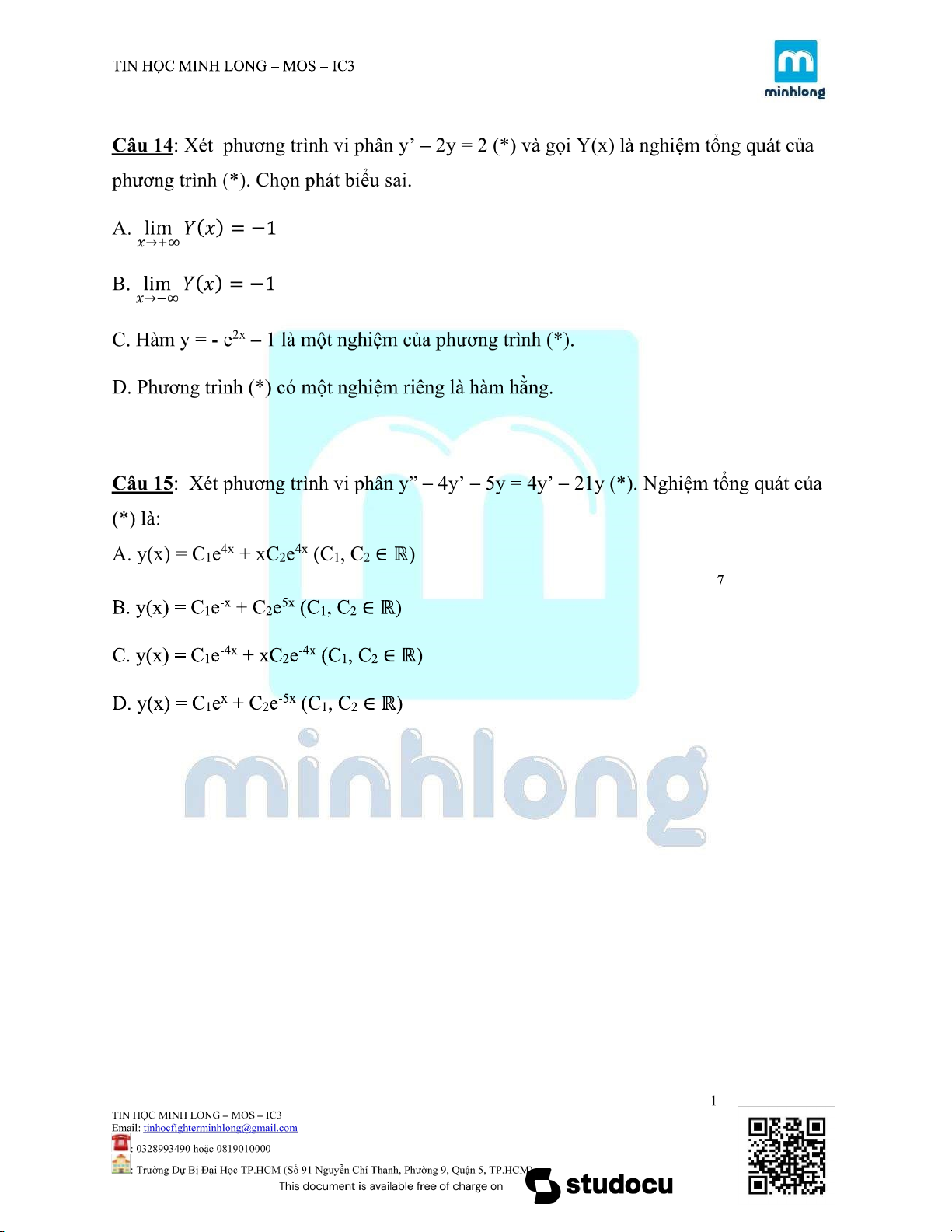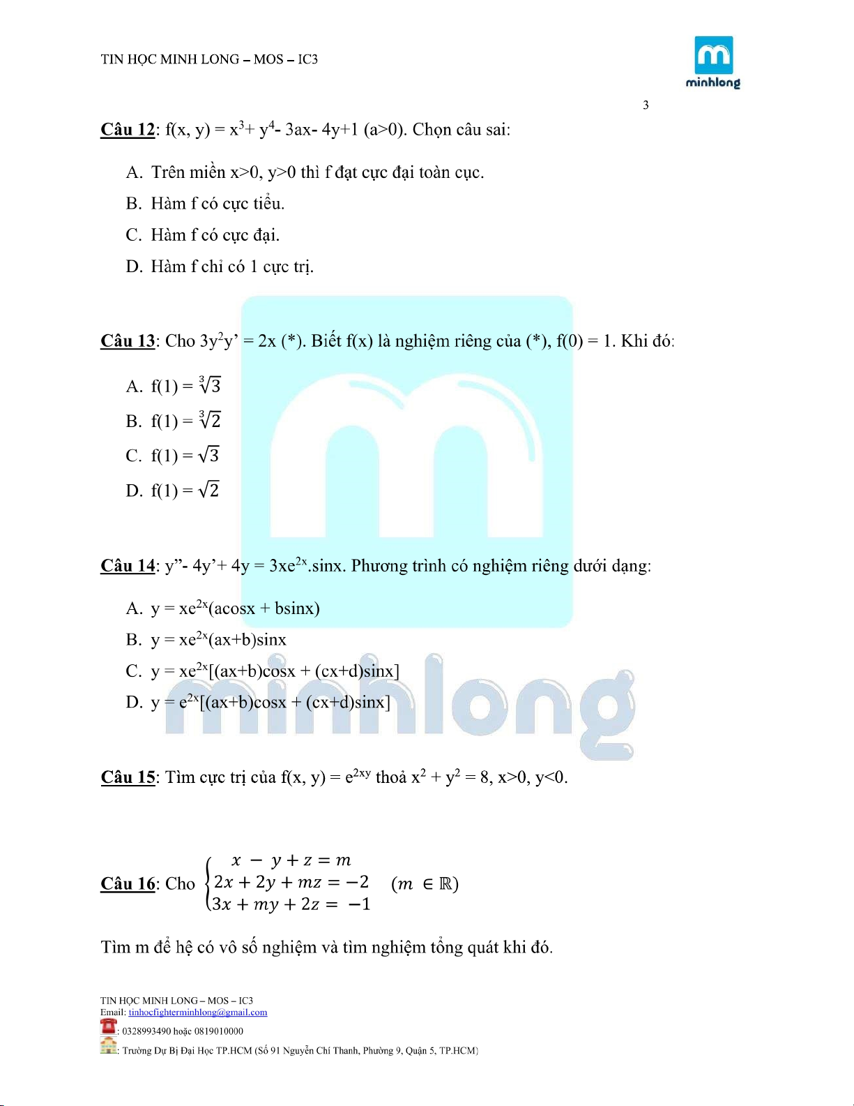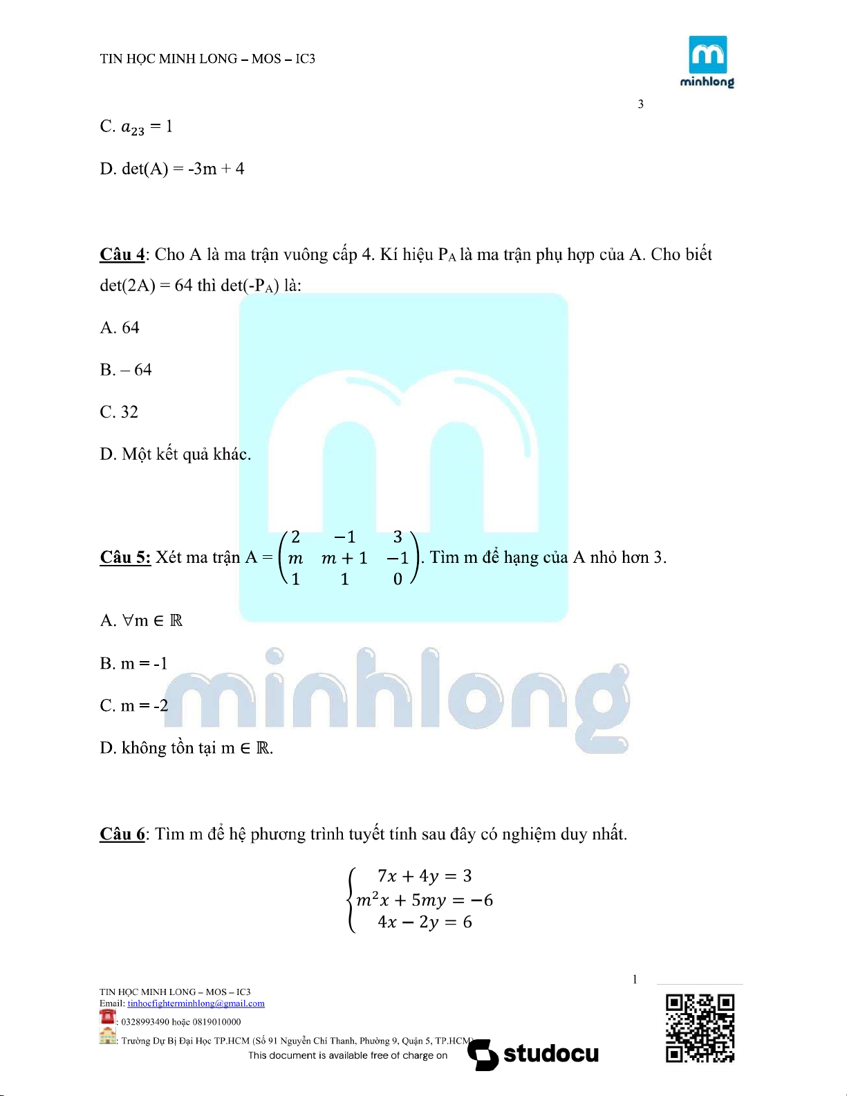 Môn: Toán Cao Cấp (KTHCM) 189 tài liệu