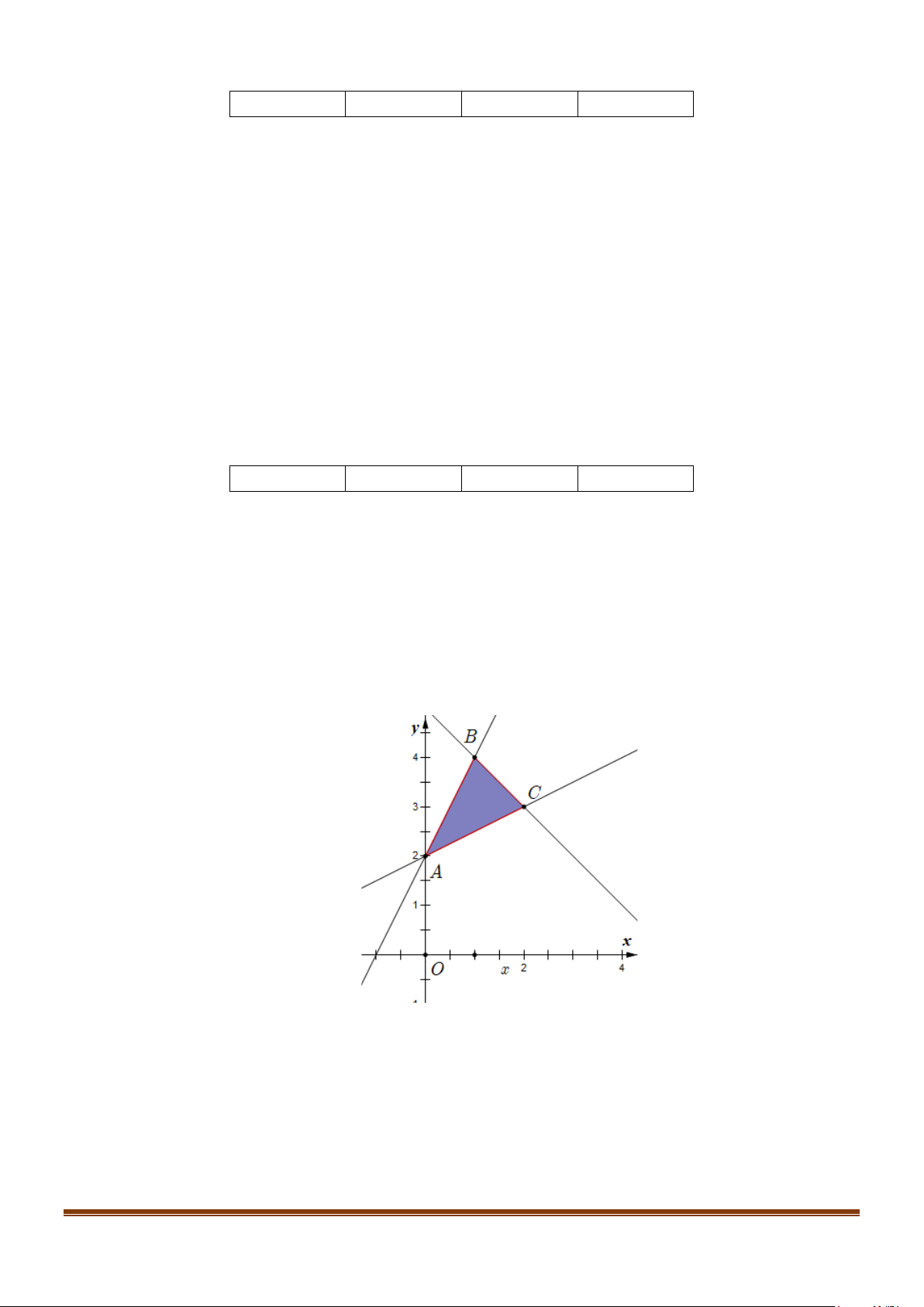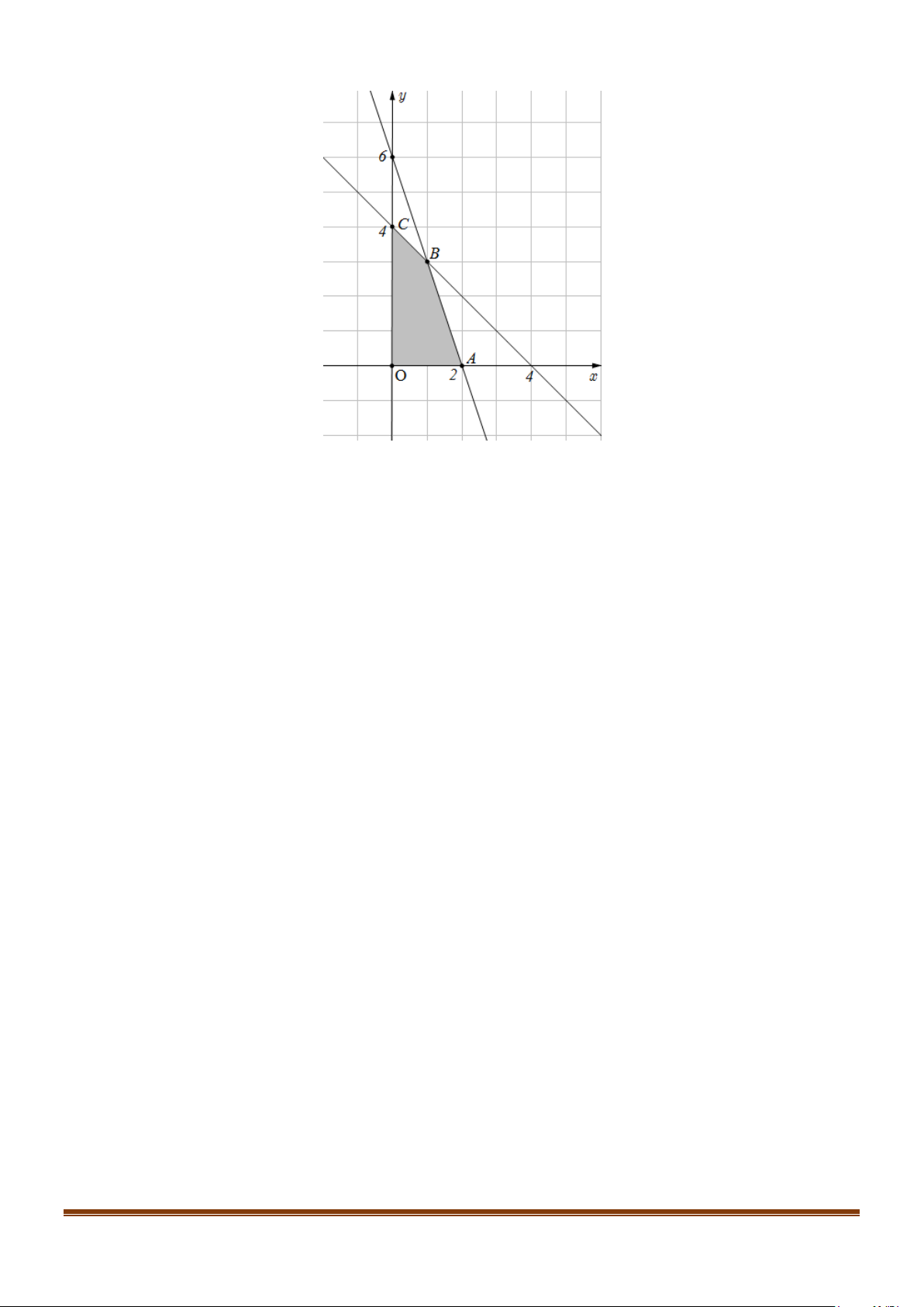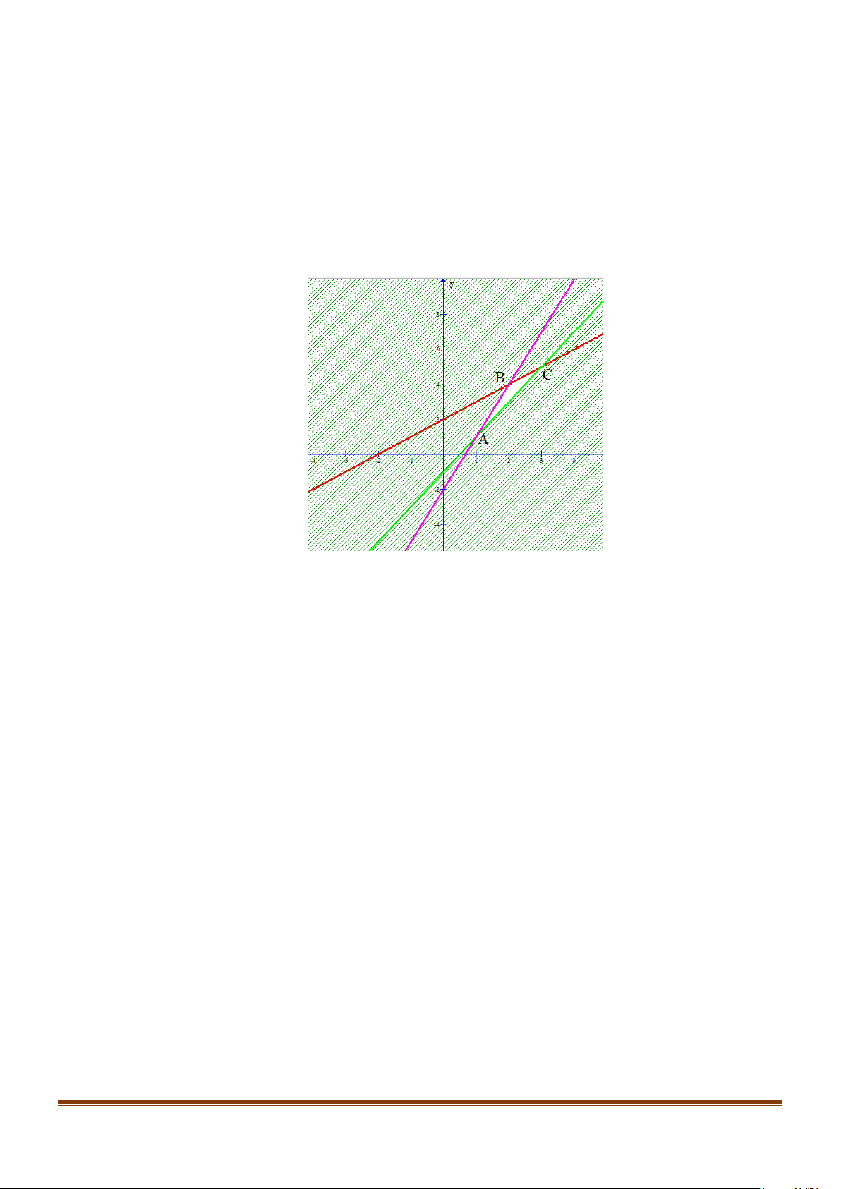 Câu 12: Miền tam giác ABC kể cả ba cạnh sau đây là miền nghiệm của hệ bất phương trình nào trong