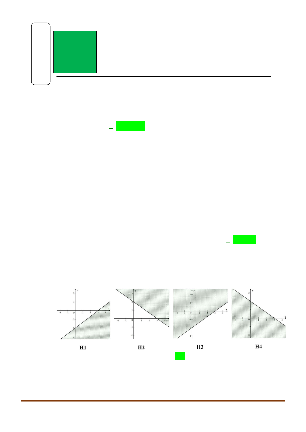 Câu 3: Hình vẽ nào sau đây biểu diễn miền nghiệm của bất phương trình 2x −3y − 6 ≤ 0 (miền không tô đậm kể cả bờ)? A. H1 B. H 2 C. H3 D. H 4