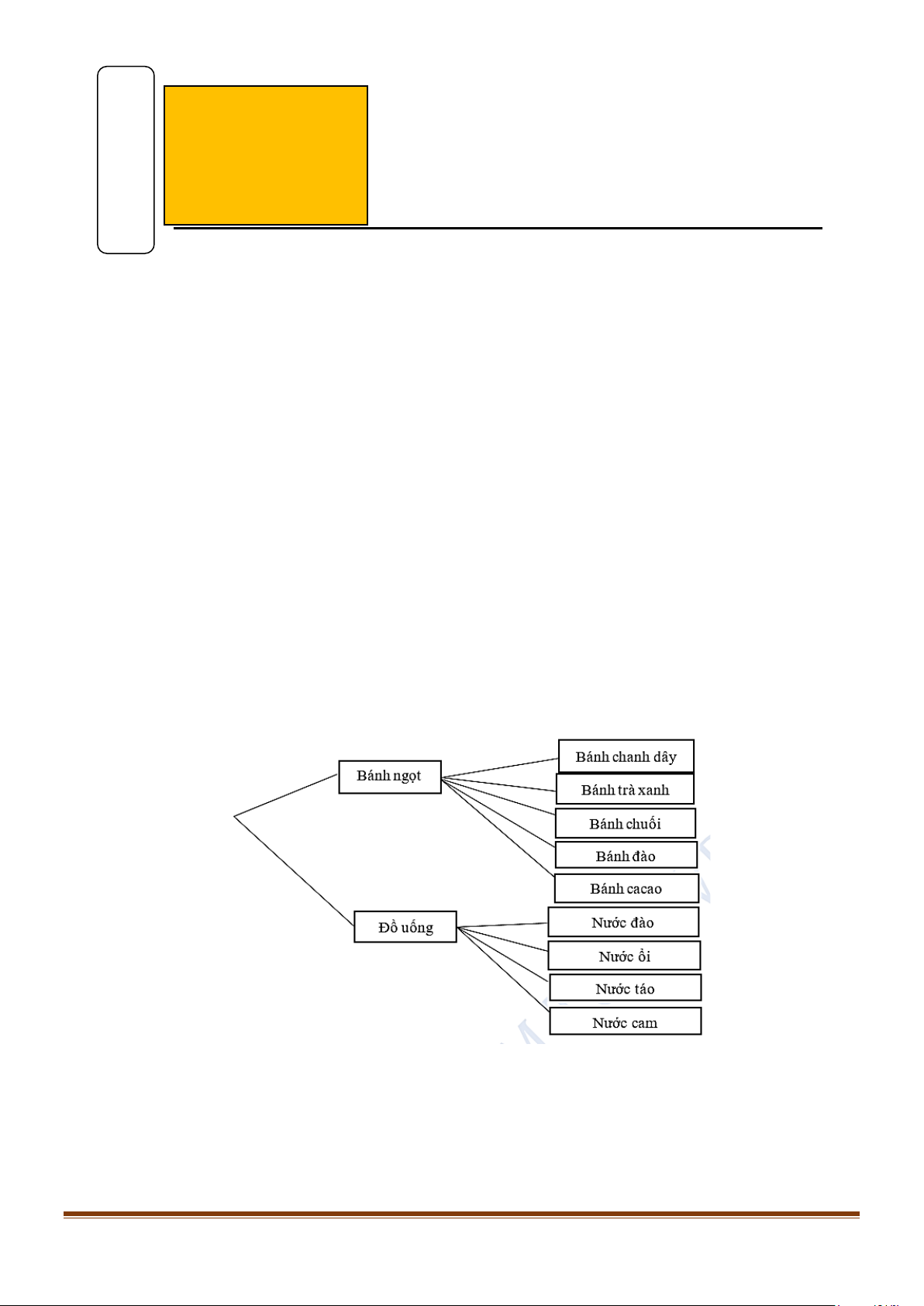 Câu 5: Cửa hàng tiện lợi có bán combo bánh ngọt và đồ uống. Các loại bánh ngọt và đồ uống được mô