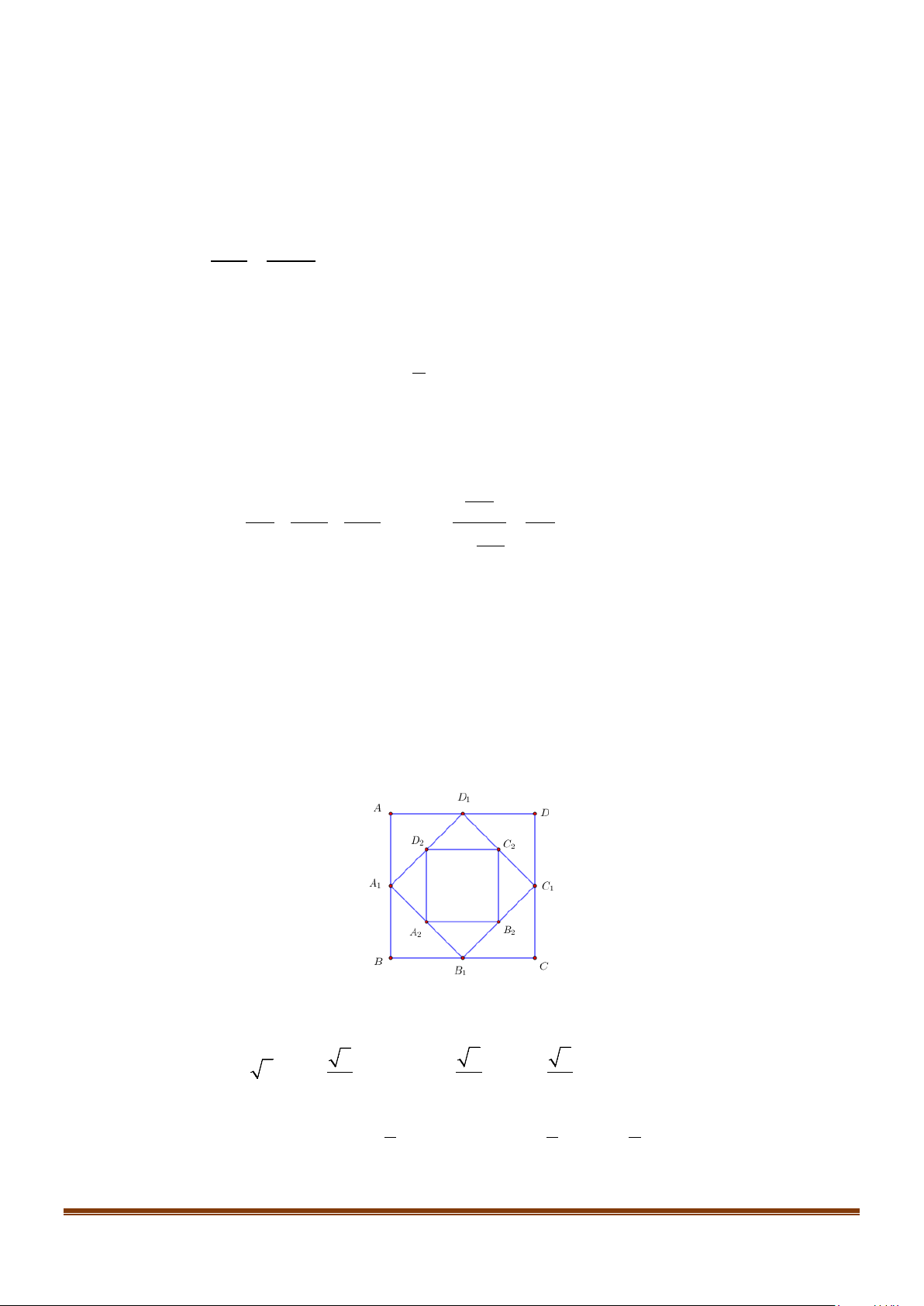như thế. Giả sử quá trình trên kéo dài vô hạn. Tính tổng diện tích các hình vuông được tạo thành  nếu a = 4cm .  1   Lời giải  Trả lời: 32  2   Ta có:  2 2 2 A D = 2.AD = AD , C D = A D =   AD ,…  1 1 1 2 2 2 1 1 2  2    2 Khi đó:  2 1  1 S 1 = AD ,  2 2