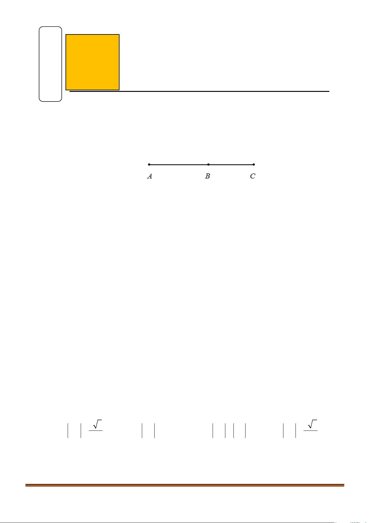 Câu 6: Cho ba điểm A, B, C cùng nằm trên một đường thẳng. Các vectơ AB,BC cùng hướng khi và chỉ khi: