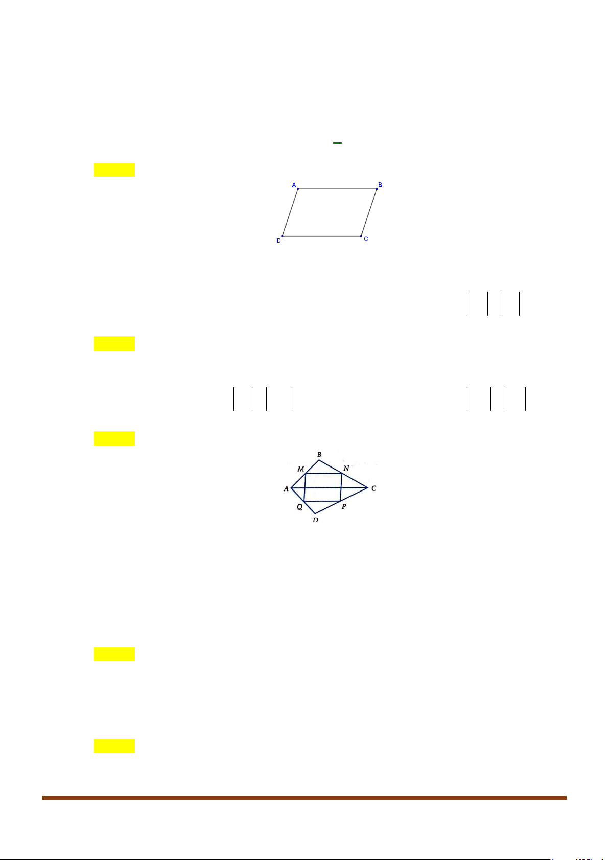 Câu 5: Cho hình bình hành ABCD . Gọi M,N lần lượt là trung điểm của DC, .