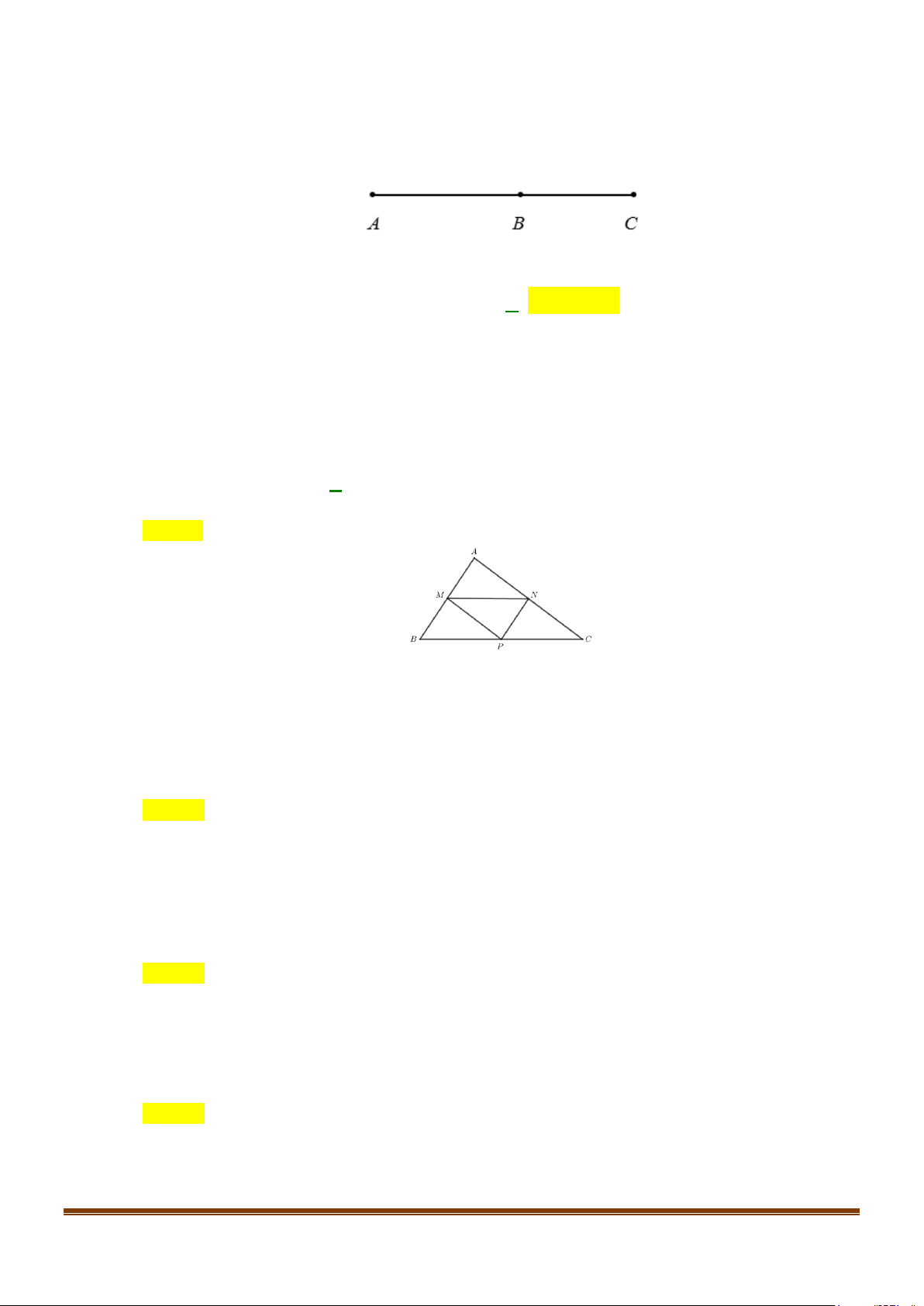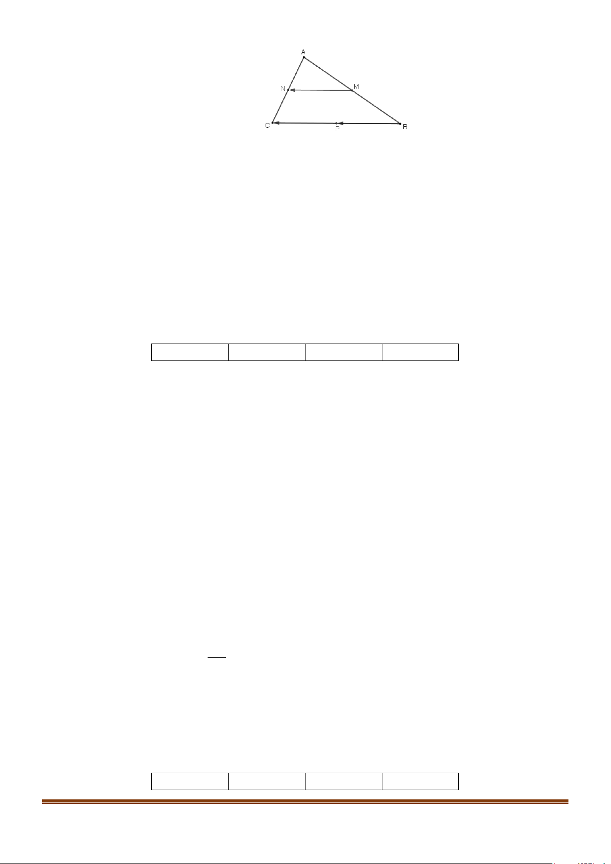 Câu 1: Cho tam giác ABC có M và N lần lượt là trung điểm của AB và AC . Lấy điểm P đối xứng
