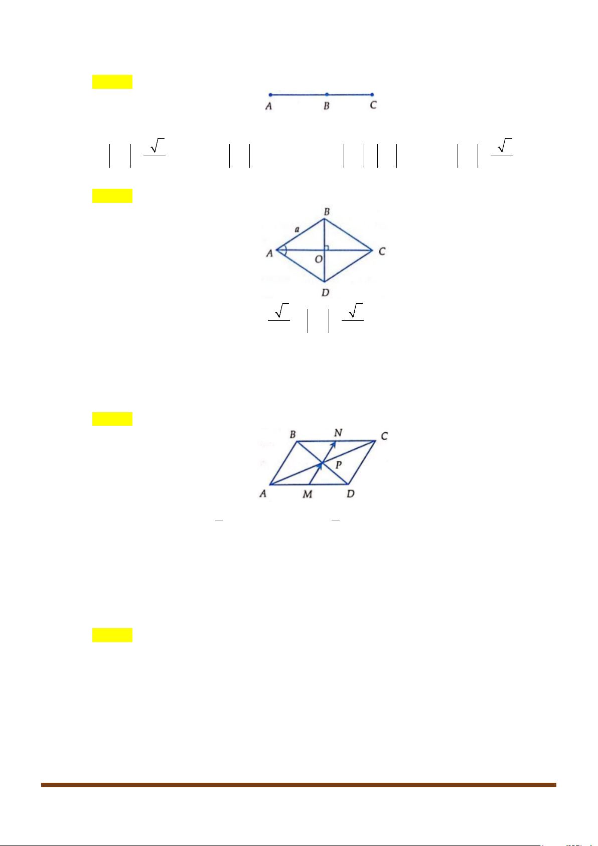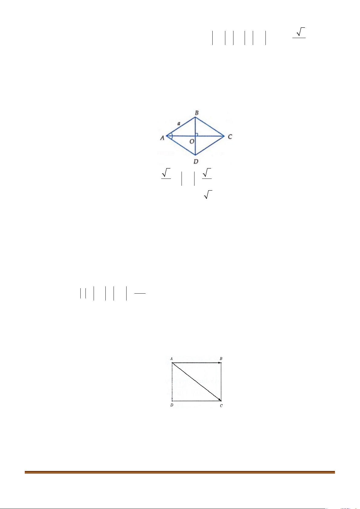 Câu 1: Cho hình thoi tâm O, cạnh bằng 1 và A = 60° . Độ dài của vectơ AO bằng bao nhiêu? Kết quả