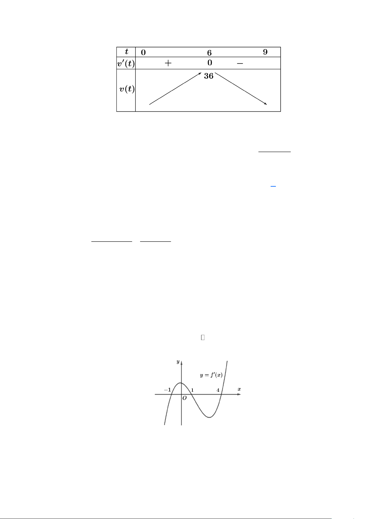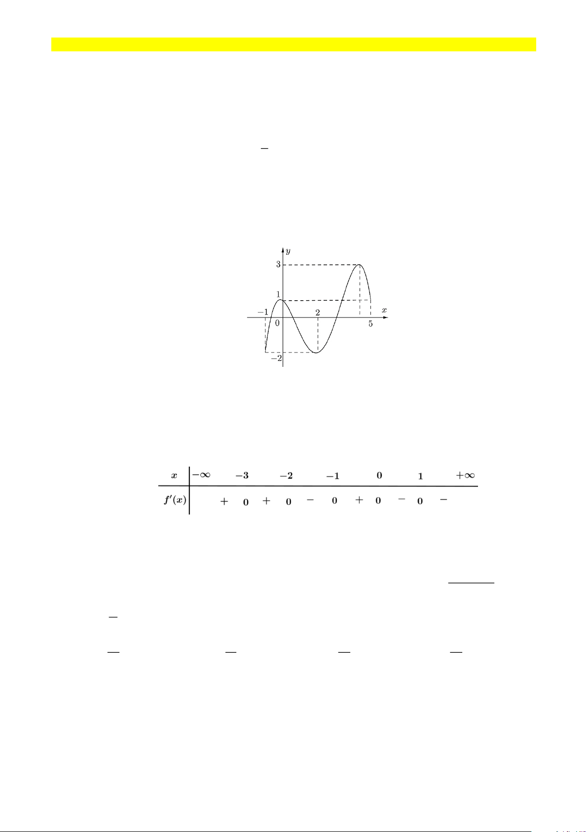Câu 5: Cho hàm số y = f (x) có bảng xét dấu đạo hàm như sau