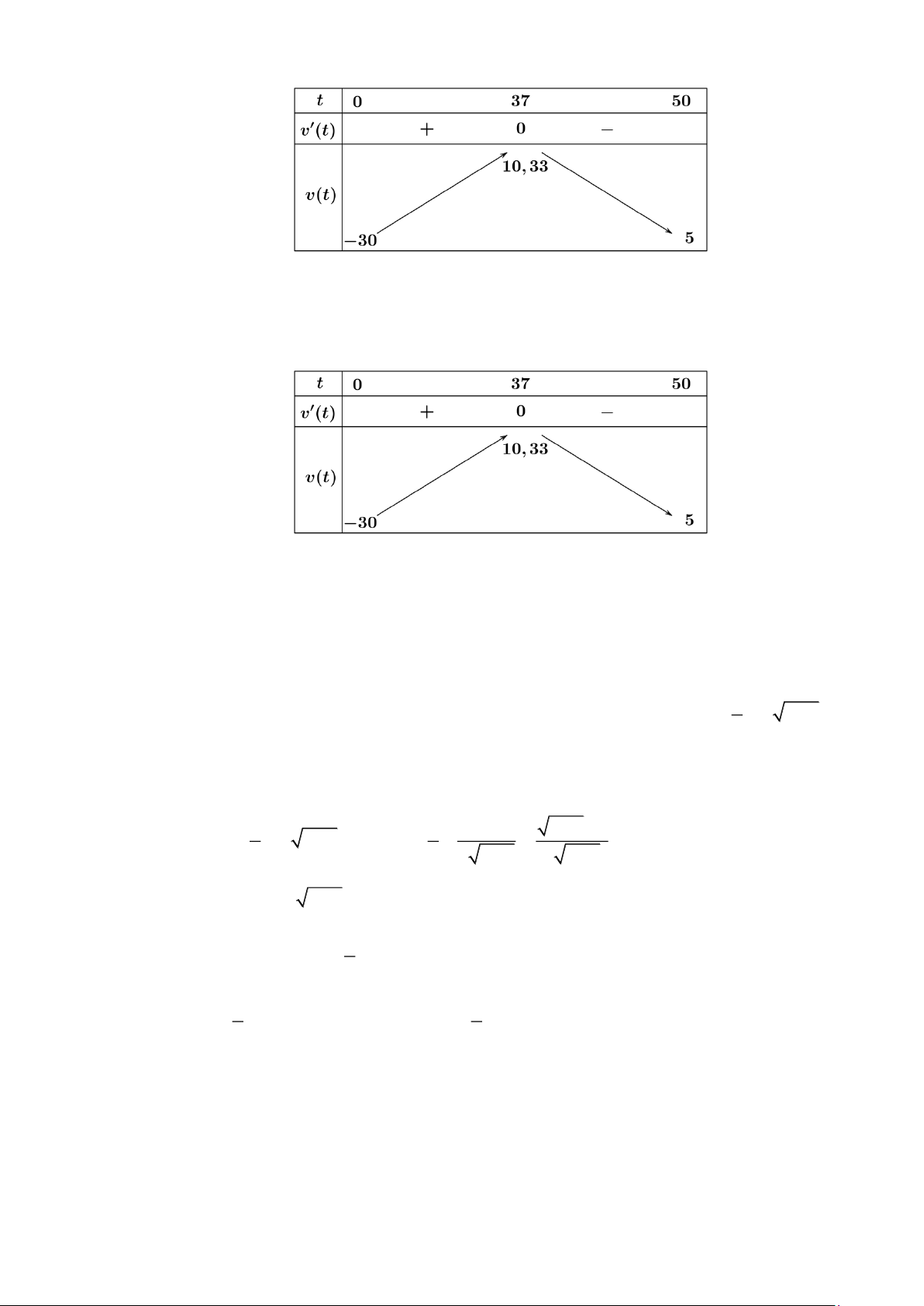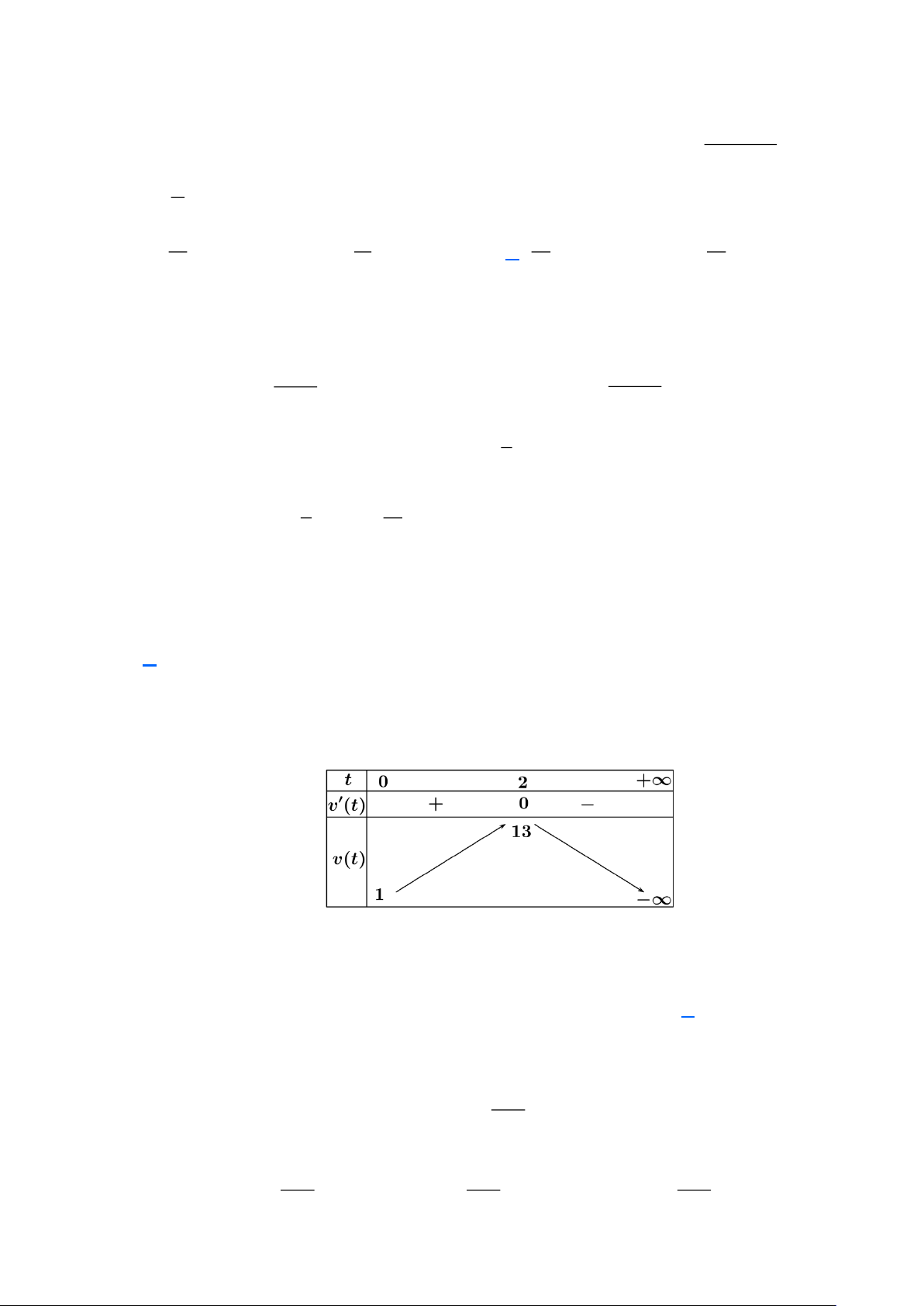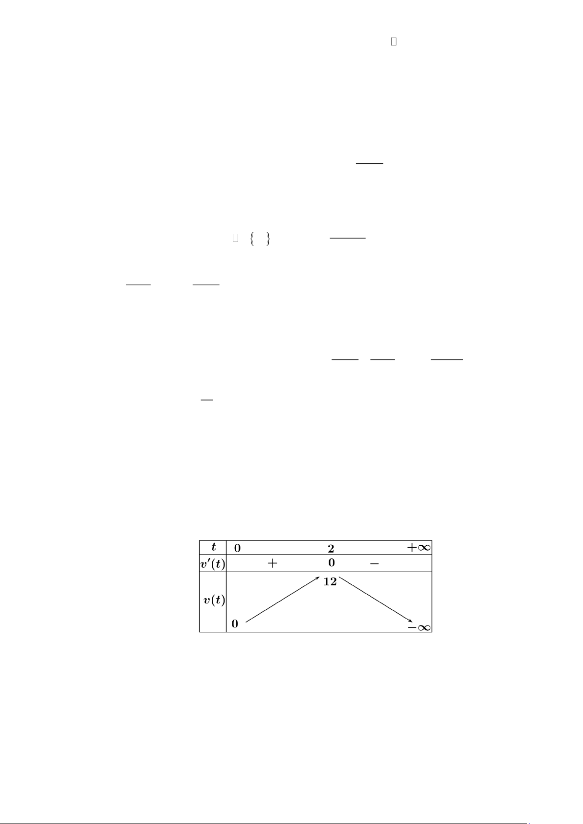 =12t − 3t suy ra v(t) =12 − 6t nên v(t) = 0 t = 2. Bảng biến thiên: Do vậy v