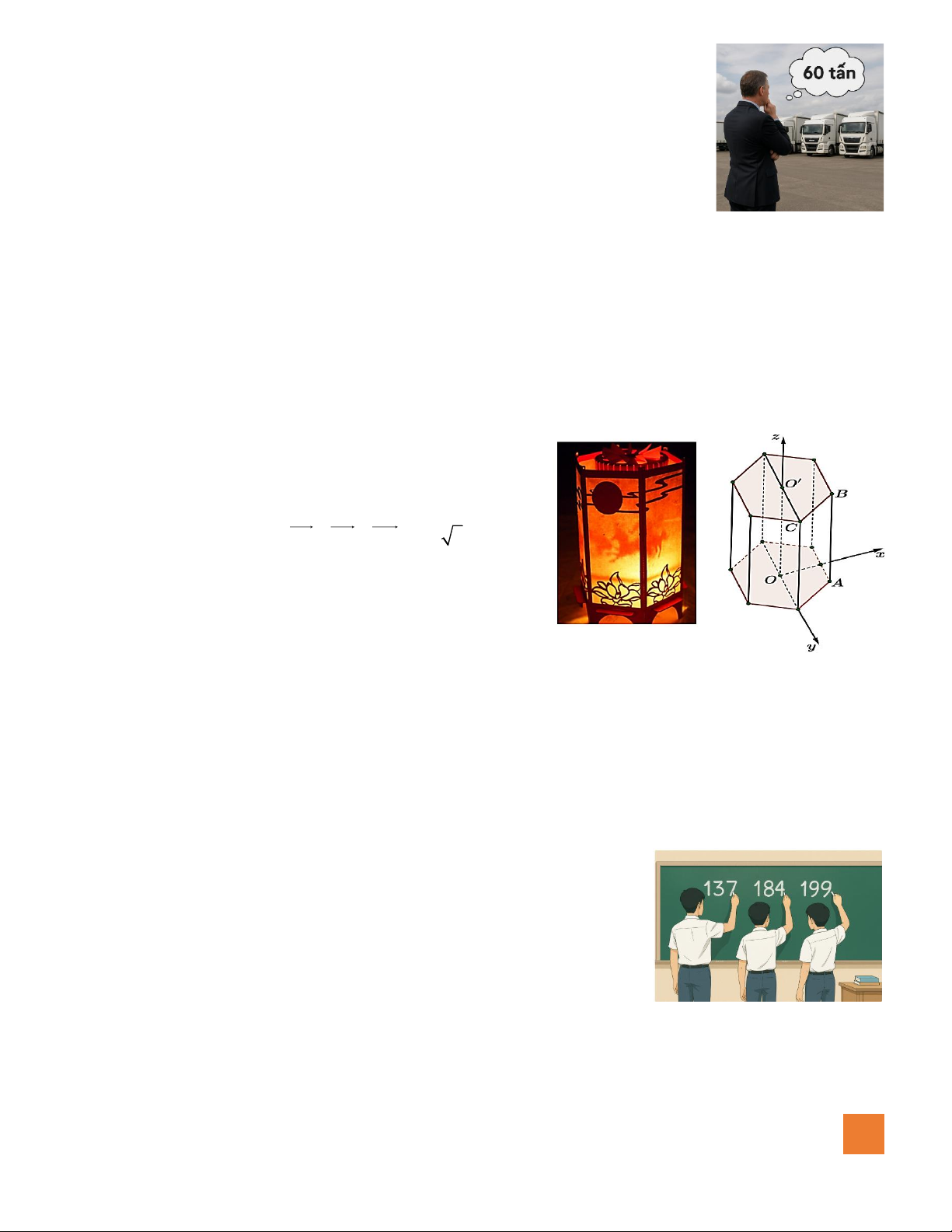 cạnh đáy của lăng trụ. Hỏi thể tích của chiếc lồng đèn này là bao nhiêu 3