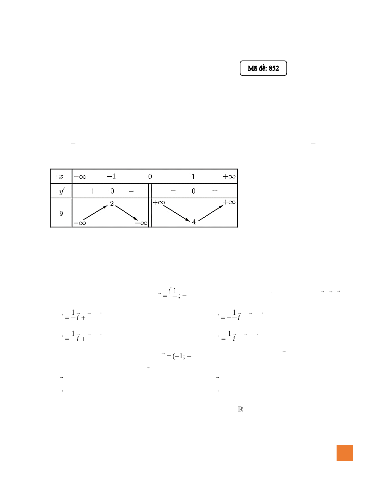 d) Đồ thị hàm số nhận gốc toạ độ O làm tâm đối xứng. MÃ ĐỀ 852 2