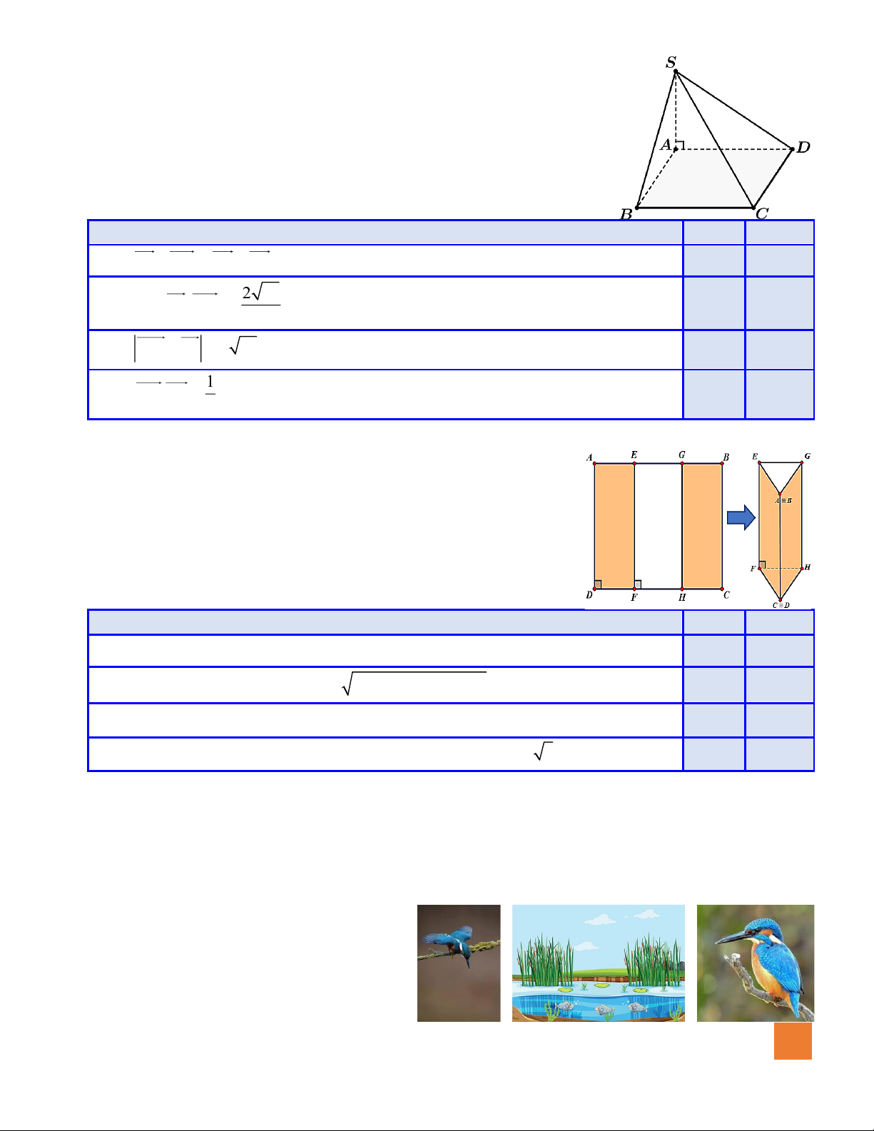 trục là mét; có hai con chim bói cá ở các vị trí A(90; 0; 25), B (80; 30; 15) trên các cành cây đang