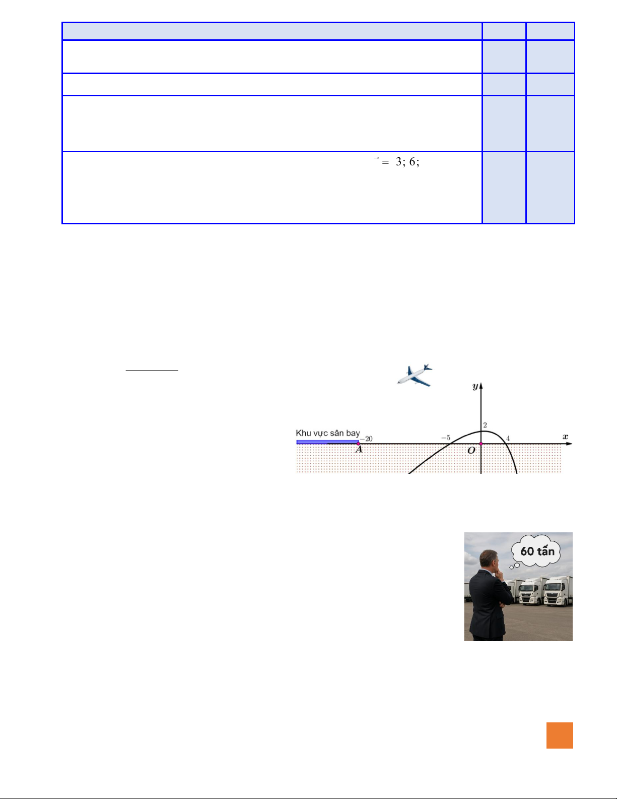 Câu 1. Trong một hệ trục tọa độ Oxy thích hợp, đơn vị mỗi trục là 100 mét, các chuyên gia của một hãng hàng