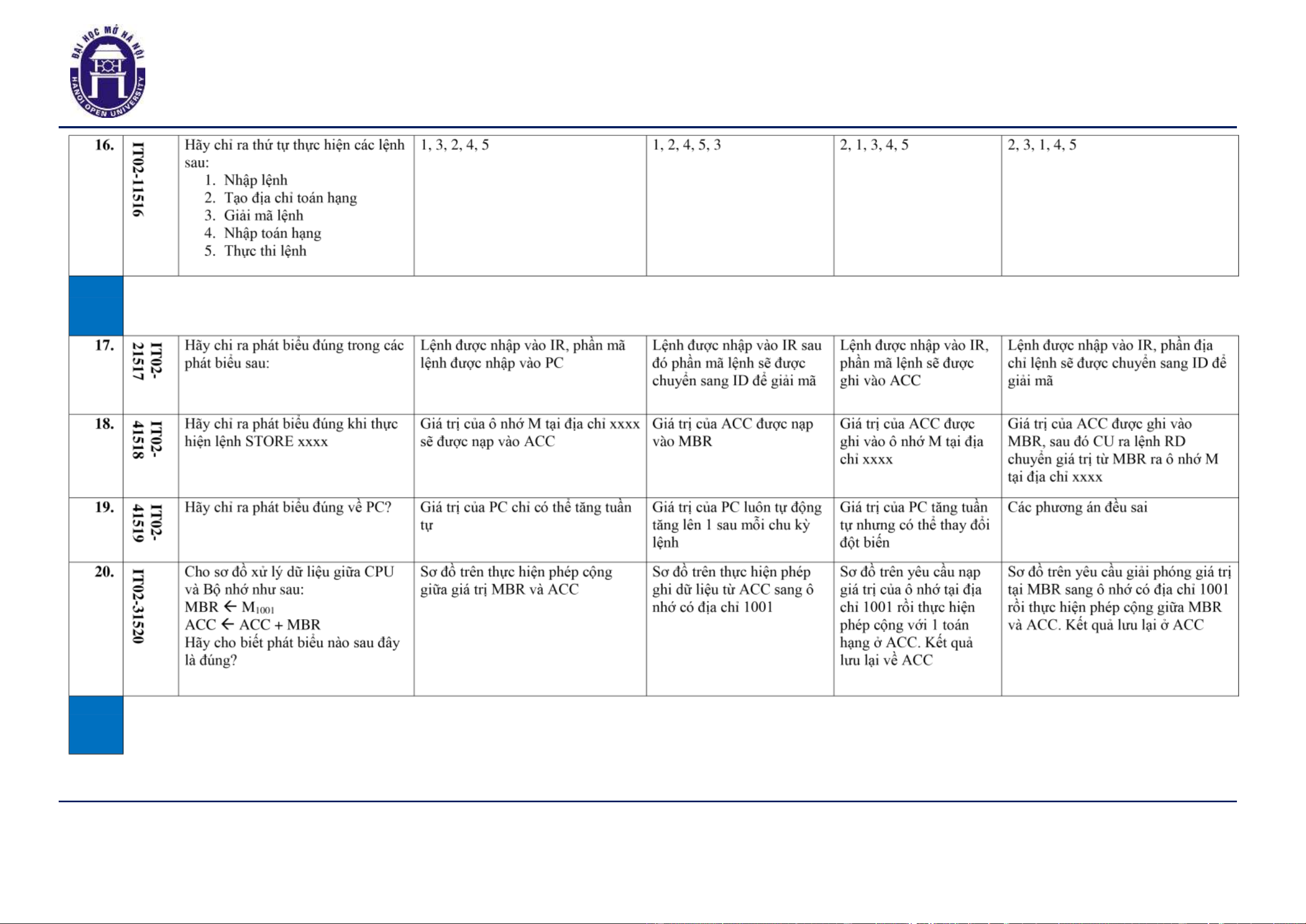 chứa lệnh hoặc toán hạng chứa lệnh hoặc toán CPU ang thực thi của CPU cần truy nhập hạng của CPU ang truy cập 10.