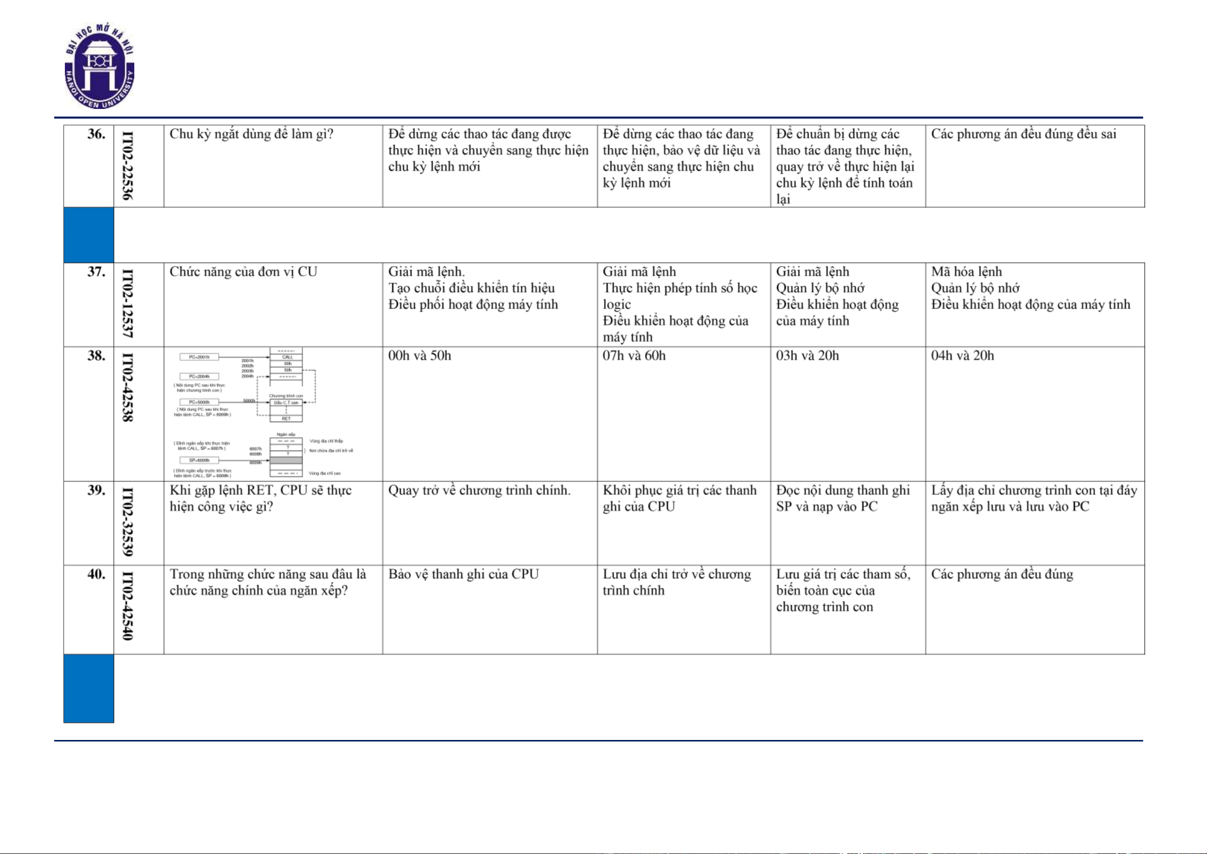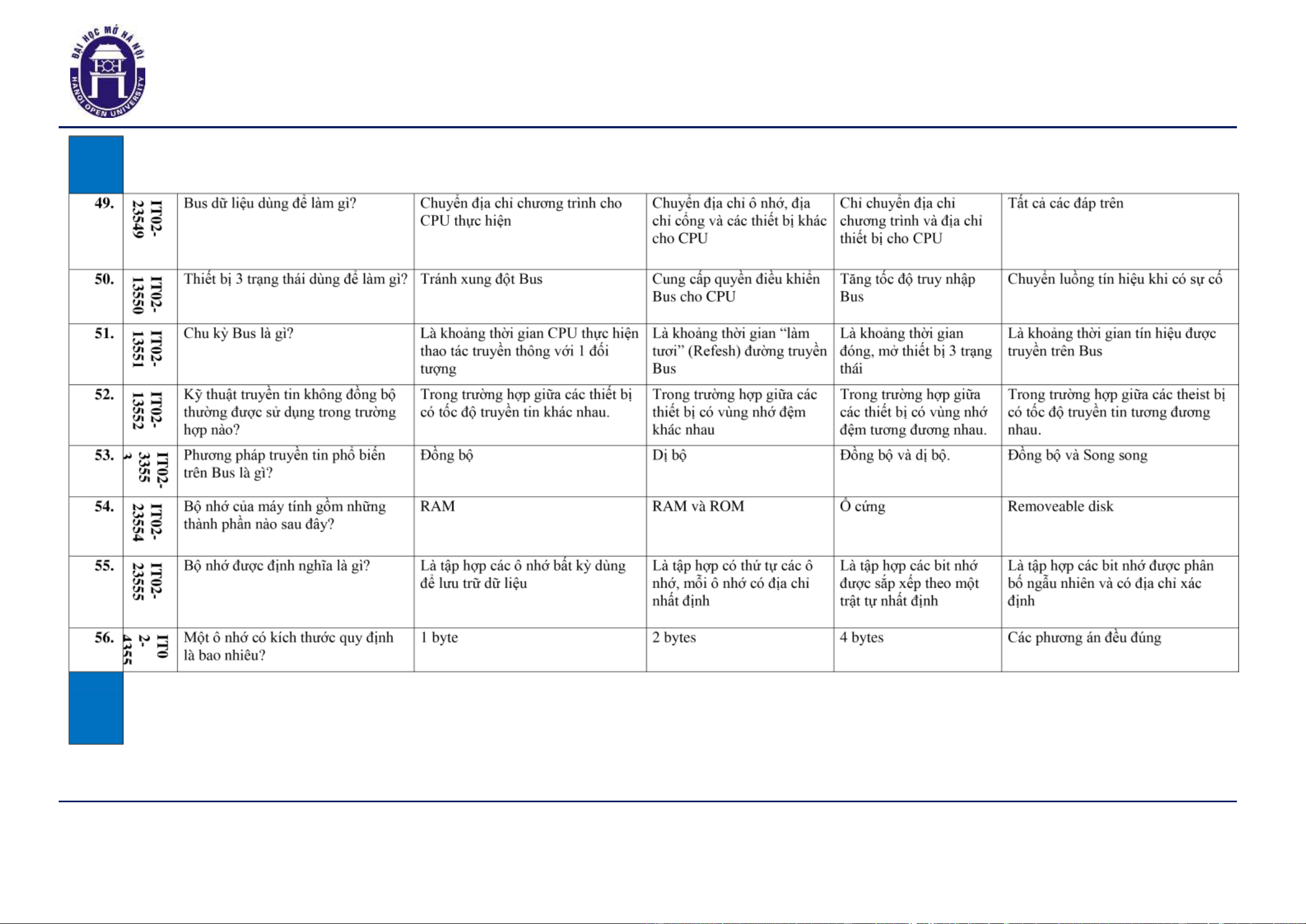 Trung tâm Đào tạ o E-Learning Cơ hộ i h ọ c t ậ p cho m ọi ngườ i Mã STT Nội dung câu hỏi Phương án A Phương án B Phương án C Phương án D câu 1.
