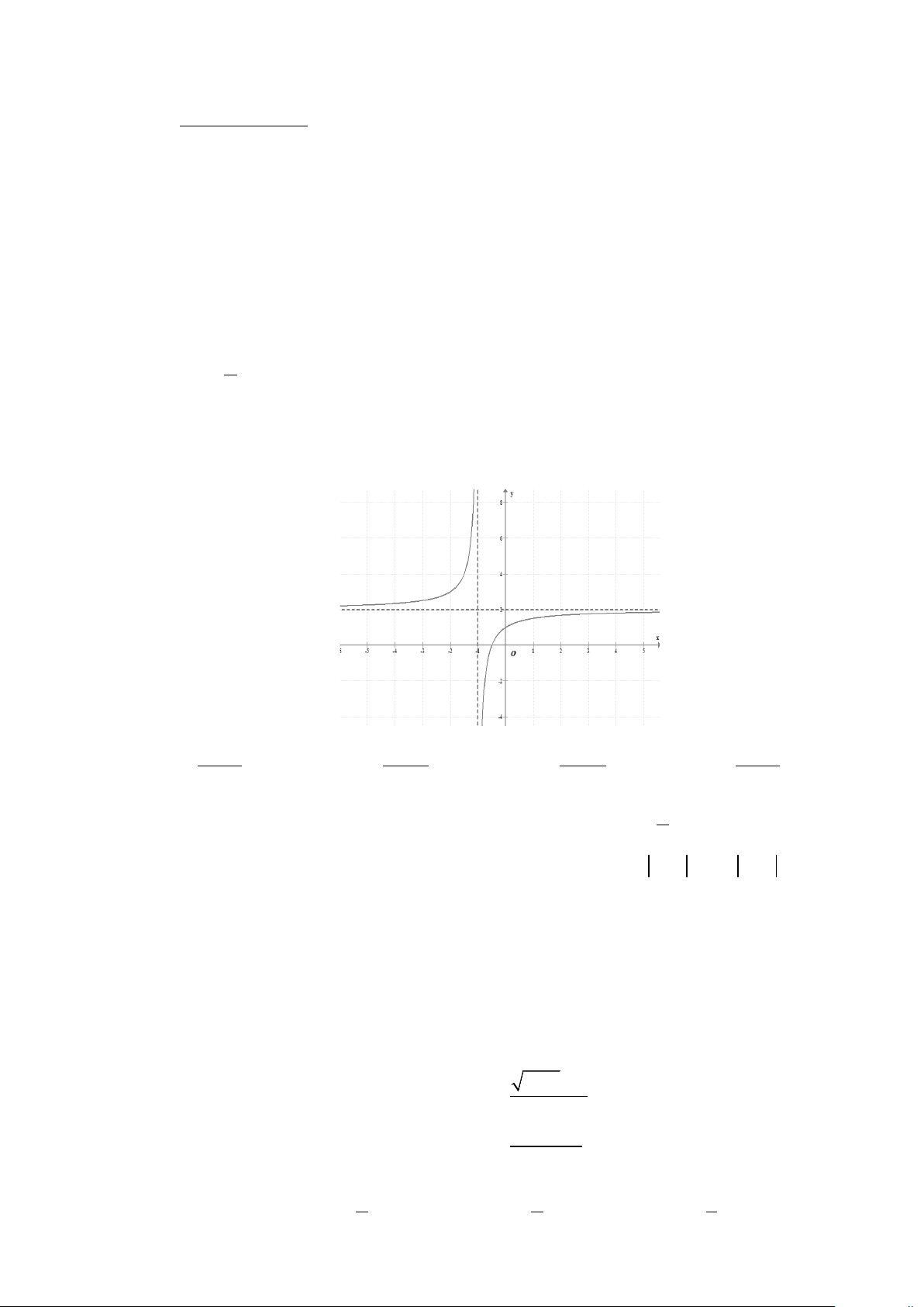 Câu 2: Hình vẽ bên dưới là đồ thị của hàm số nào A. 2x −1 y x − + x + = . B. 2 3 y = . C. 2x 3 y = . D. 2 1 y = . x +1 x +1 x +1 x +1 Câu 3: Cho hàm số 5 3