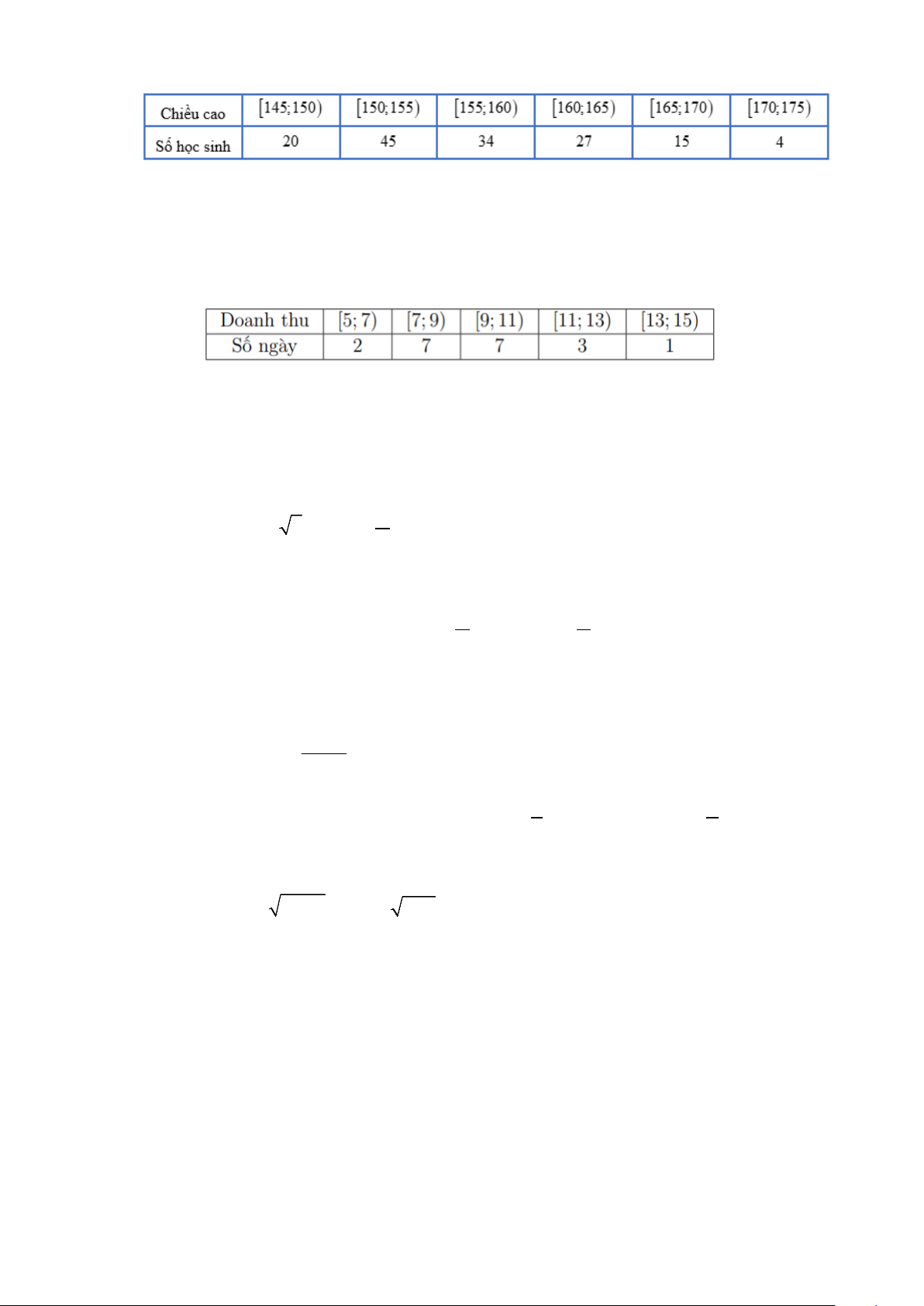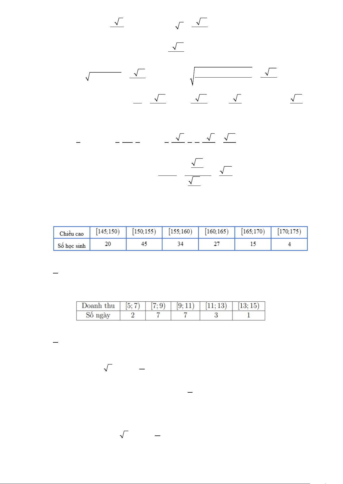 Câu 14: Doanh thu bán hàng trong 20 ngày được lựa chọn ngẫu nhiên của một chi nhánh của doanh