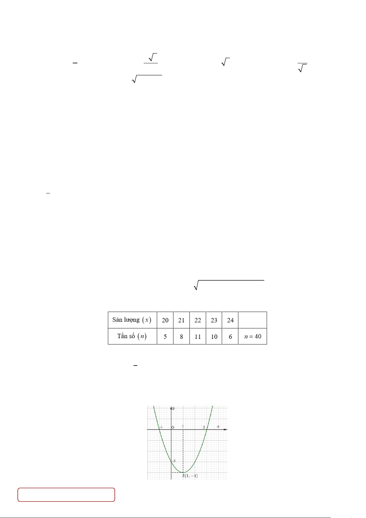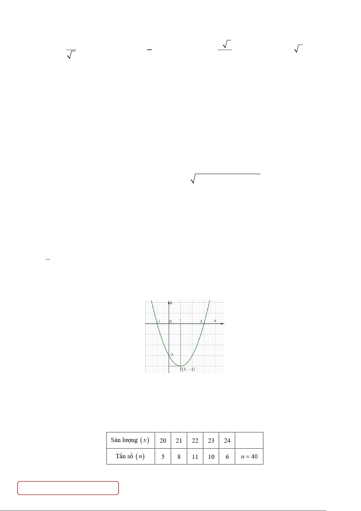 Câu 3. Sản lượng lúa (đơn vị là tạ) của 40 thửa ruộng thí nghiệm có cùng diện tích được trình bày trong bảng tần số sau đây