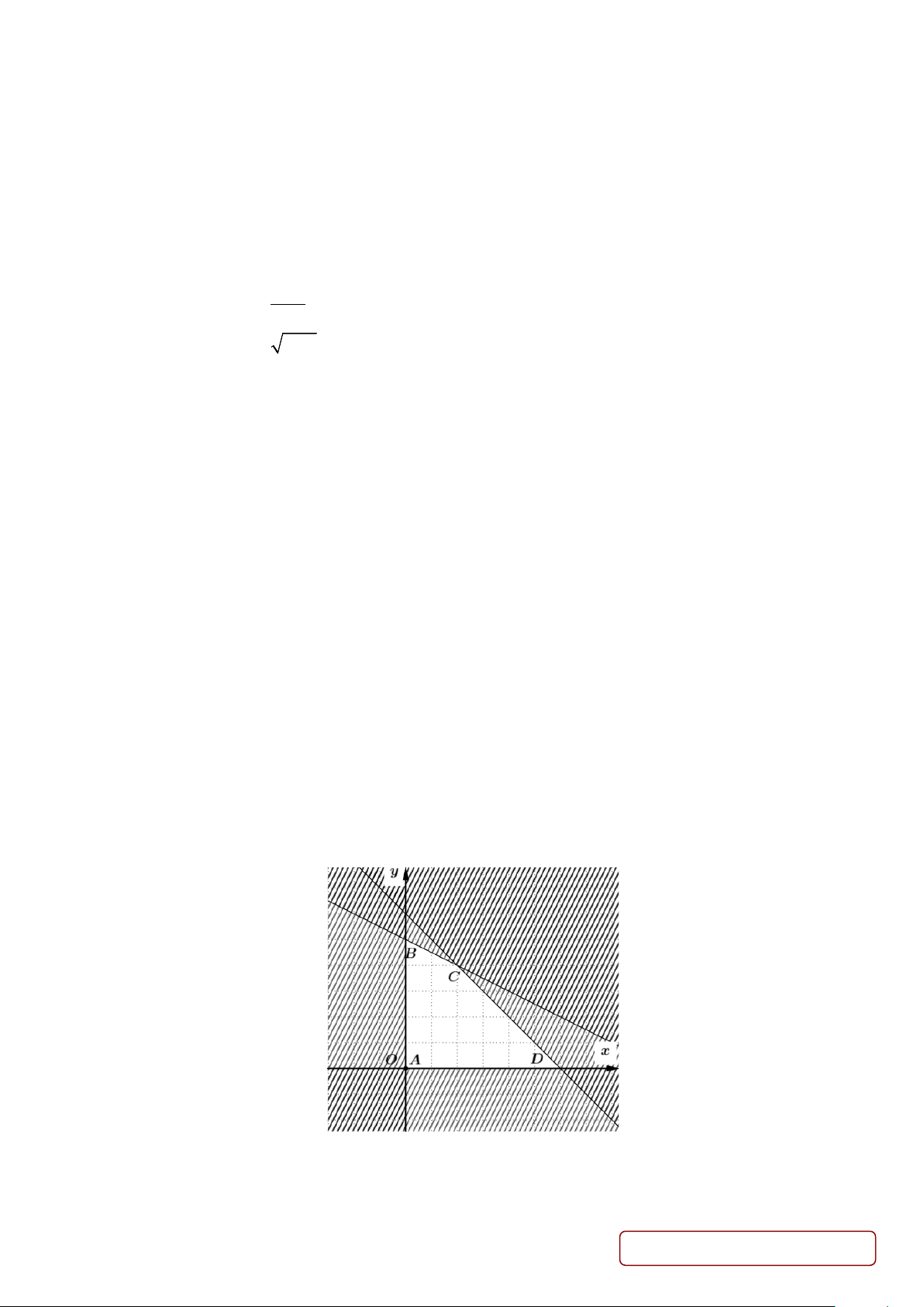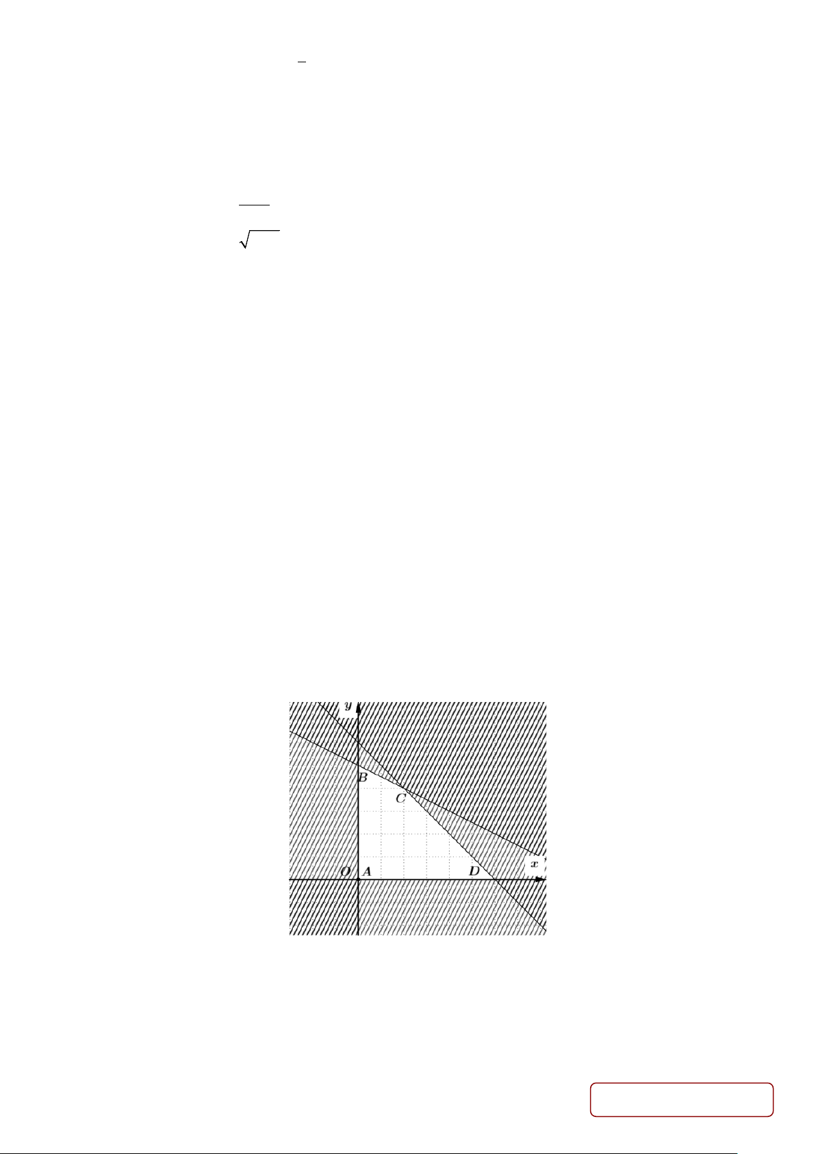 Câu 12. Trong mặt phẳng toạ độ Oxy , điểm nào sau đây không thuộc miền nghiệm của bất phương trình