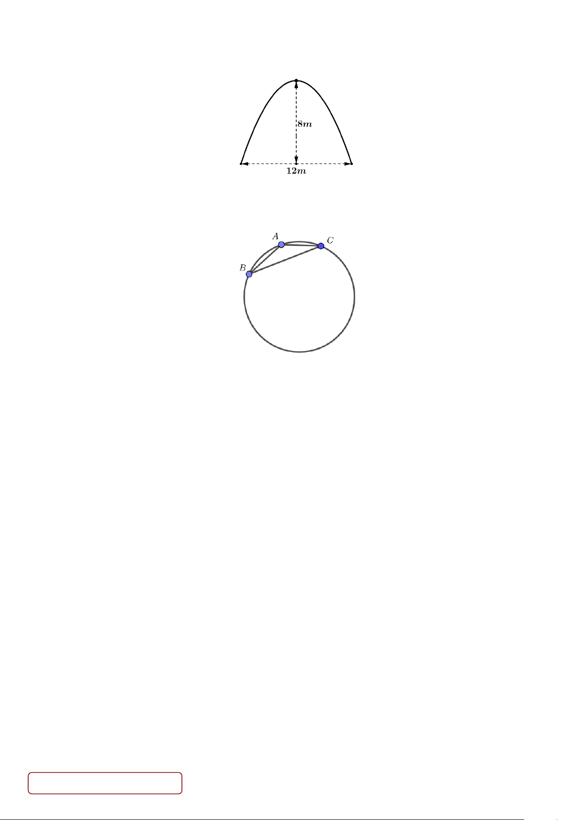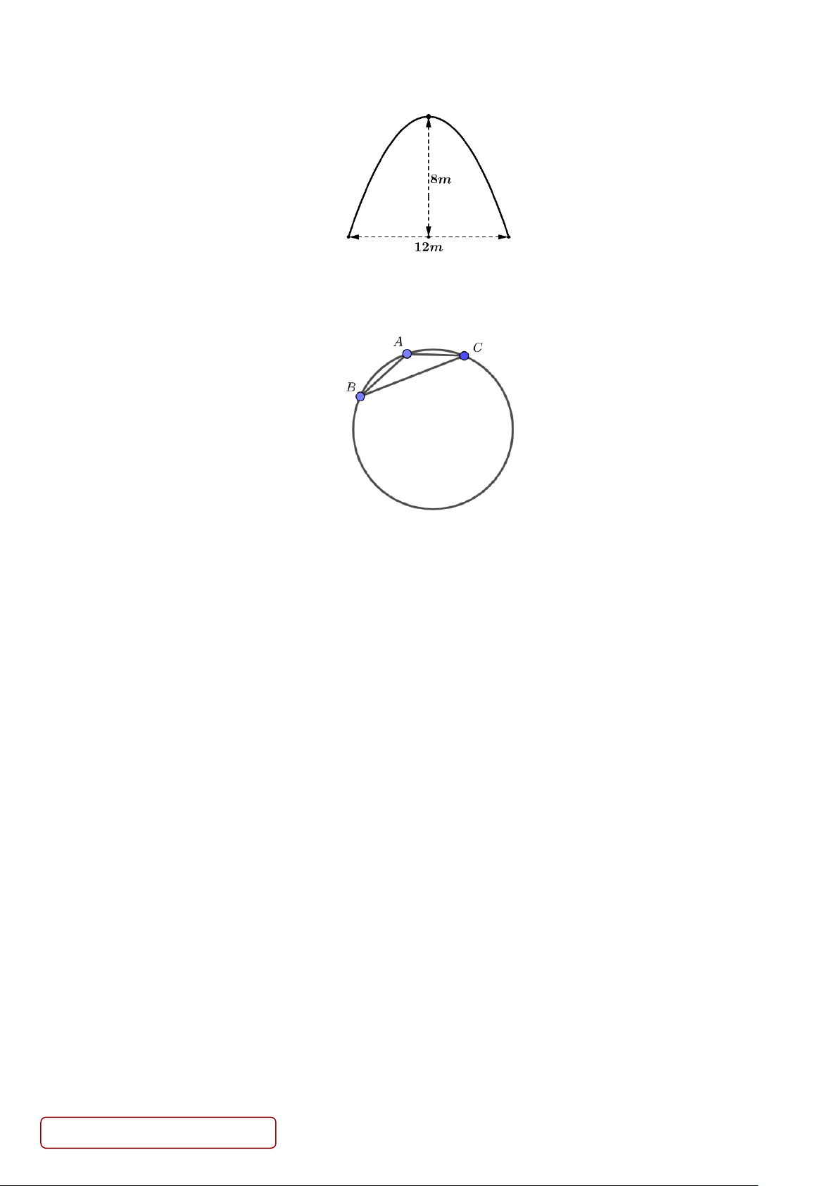 Câu 5. Một hồ nước có dạng hình tròn, người ta tiến hành đo đạc tại ba vị trí A, B, C trên bờ hồ. Kết quả đo